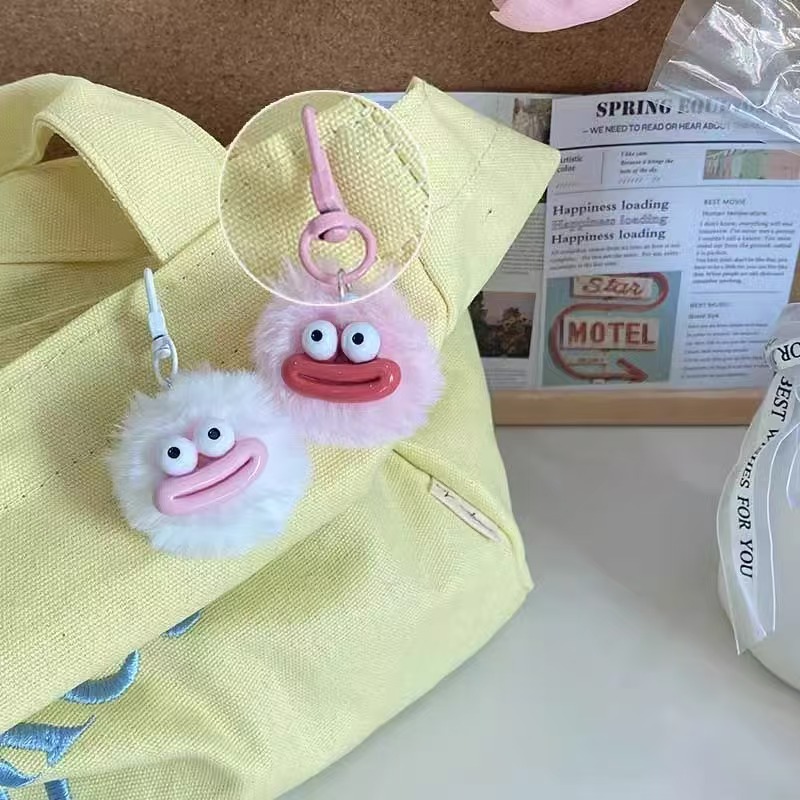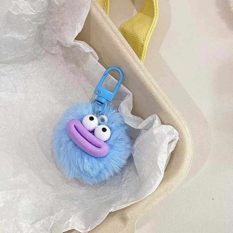 cute funny mouth fur ball keychain ugly and cute fun sausage mouth ornaments couple girlfriends school bag package pendant 中文版