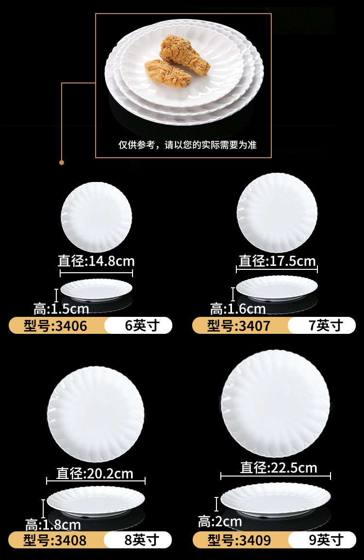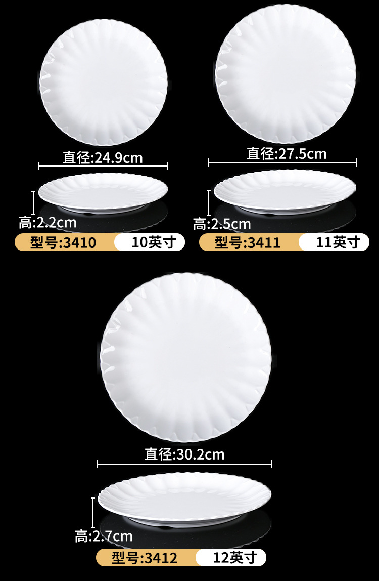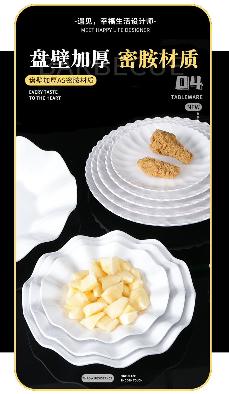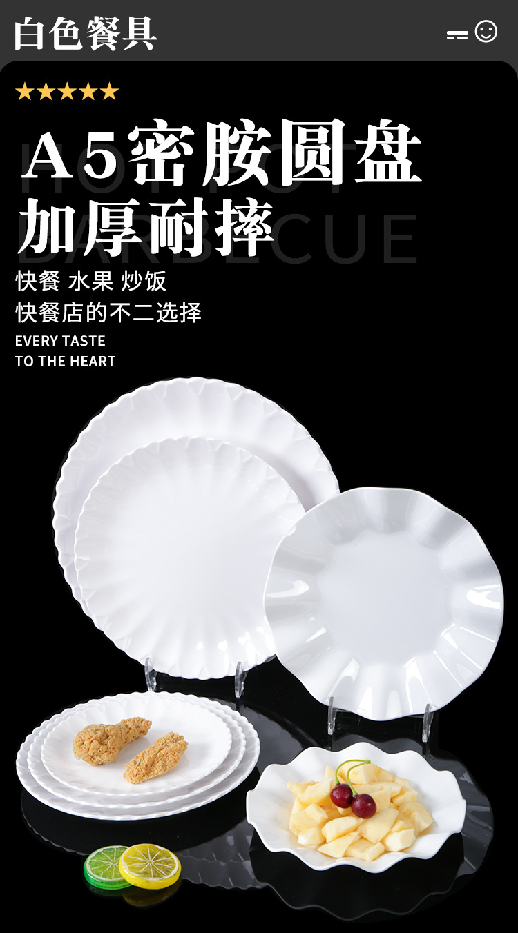 melamine plate drop-resistant round lace dish restaurant restaurant resin melamine white tableware 中文版