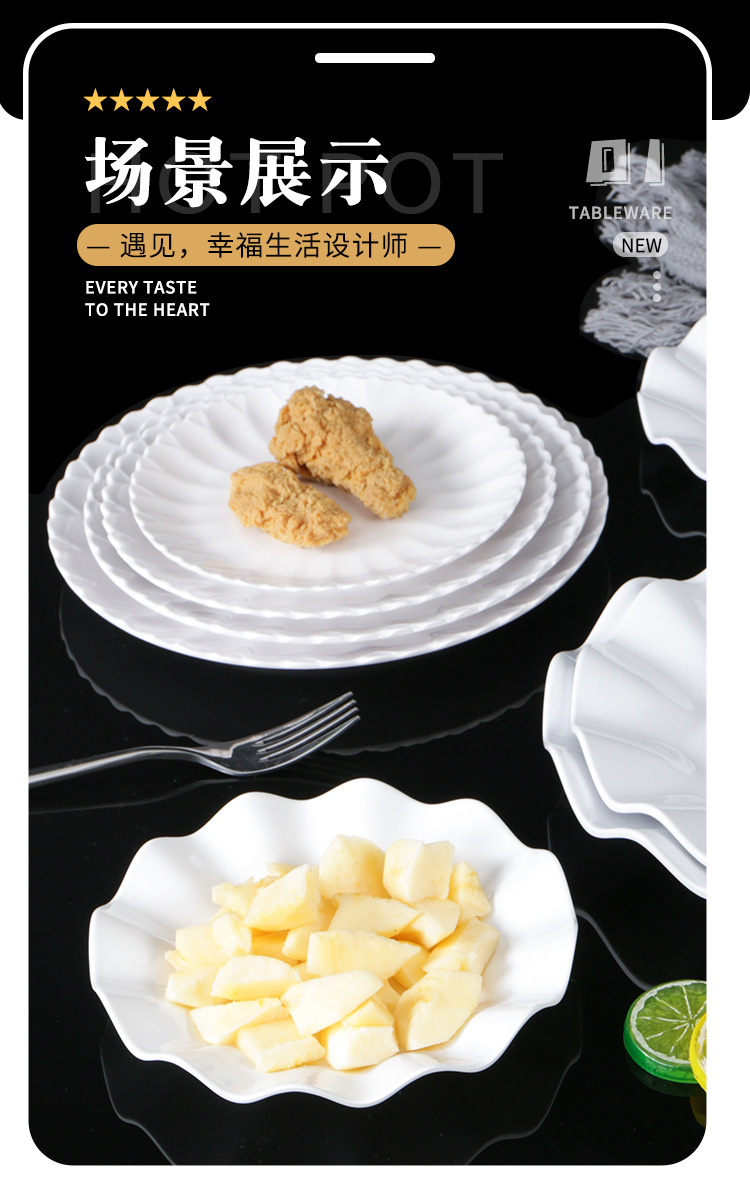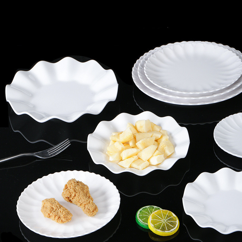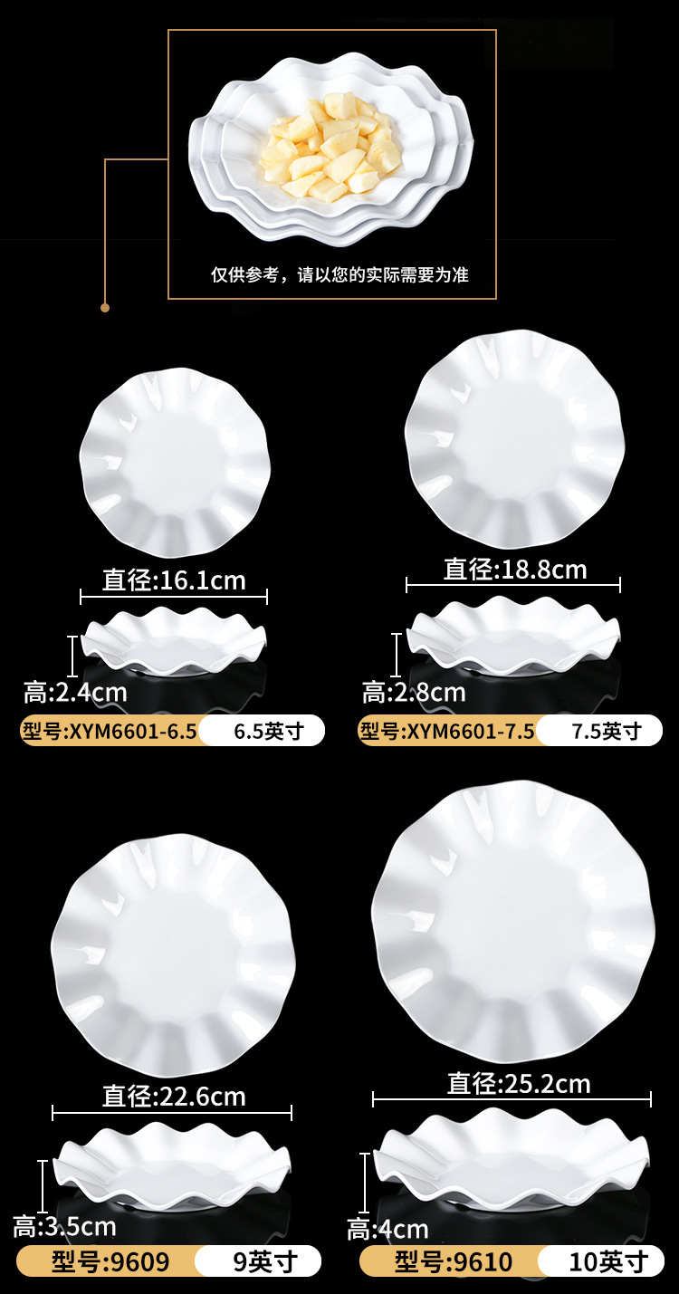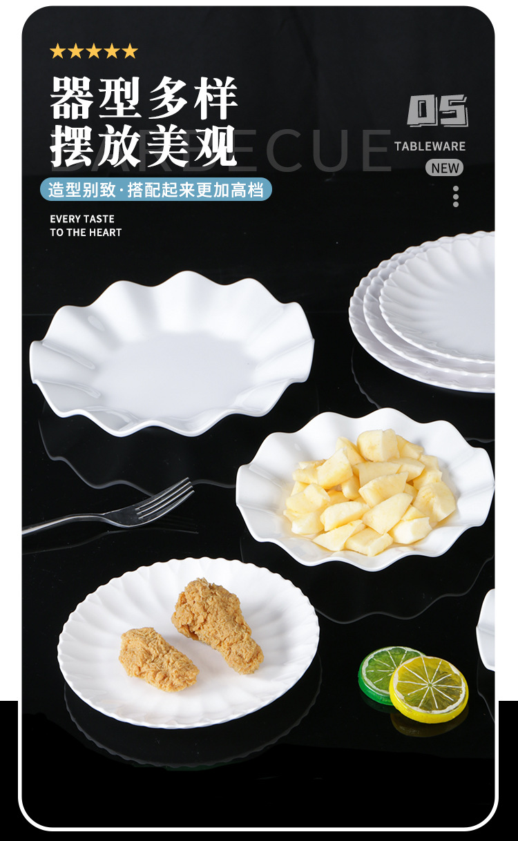 melamine plate drop-resistant round lace dish restaurant restaurant resin melamine white tableware 中文版