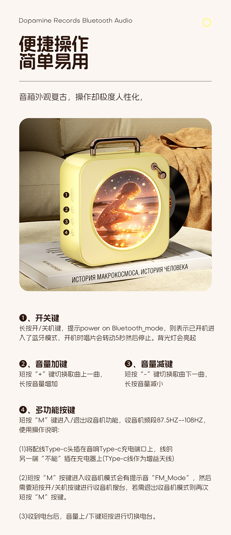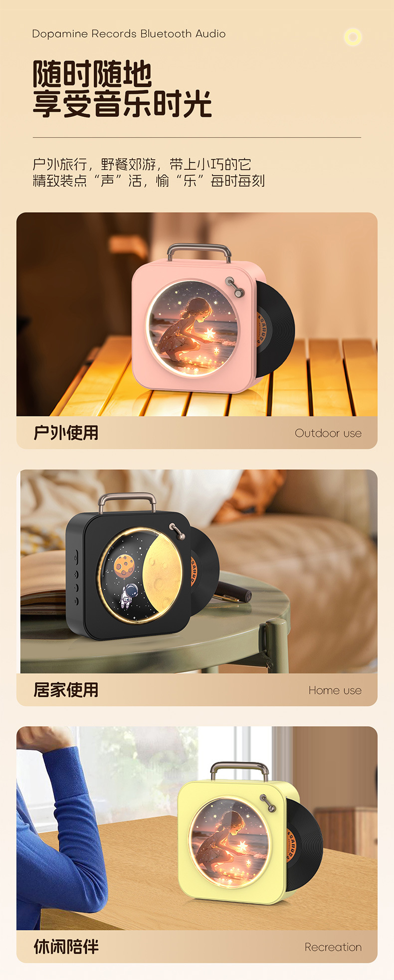 quality dopamine bluetooth audio desktop high sound quality wireless retro gramophone record birthday gift for boys and girls