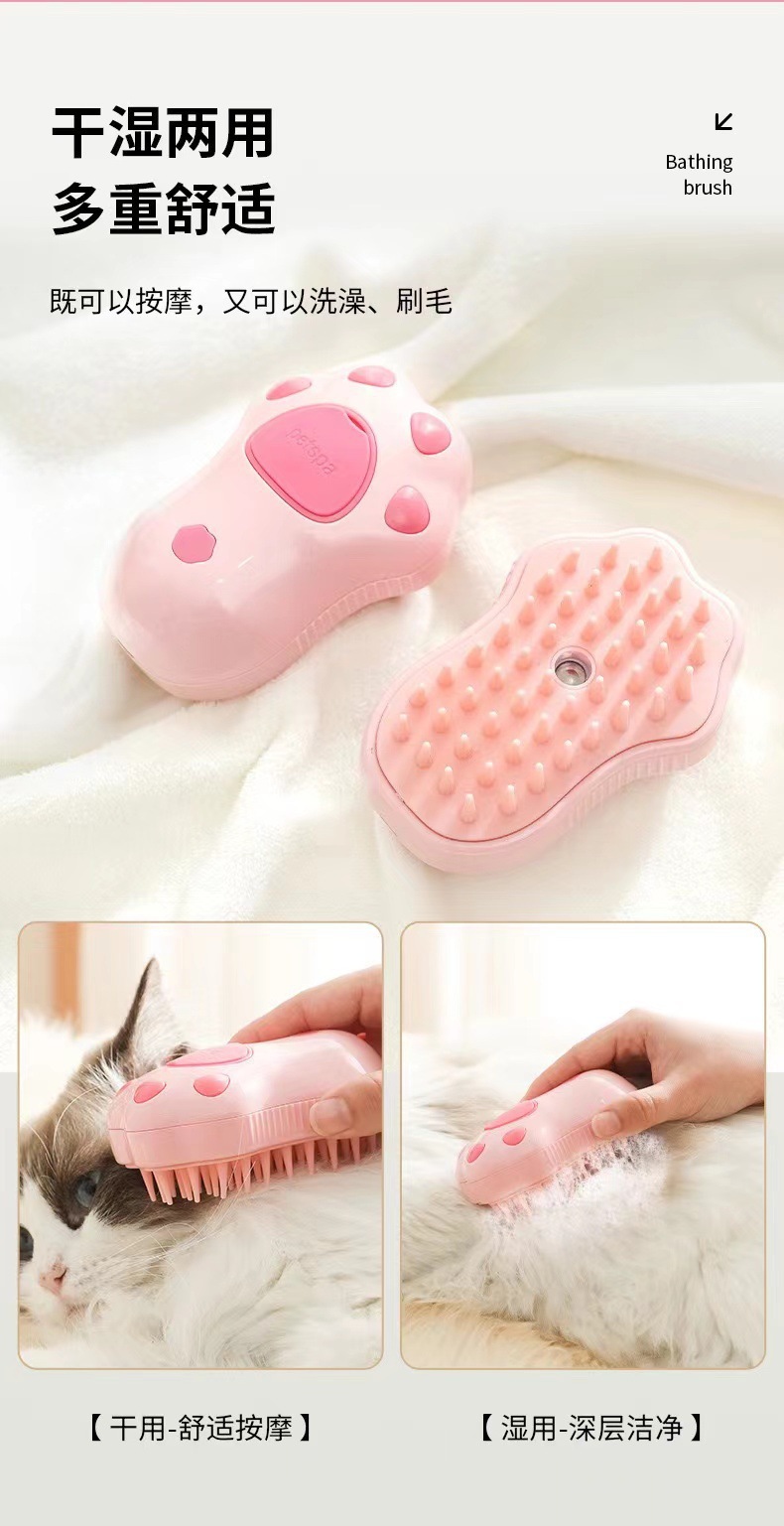new cross-border cat's paw pet comb dogs and cats electric spray brush massage comb one-click spray anti-flying hair massage wash