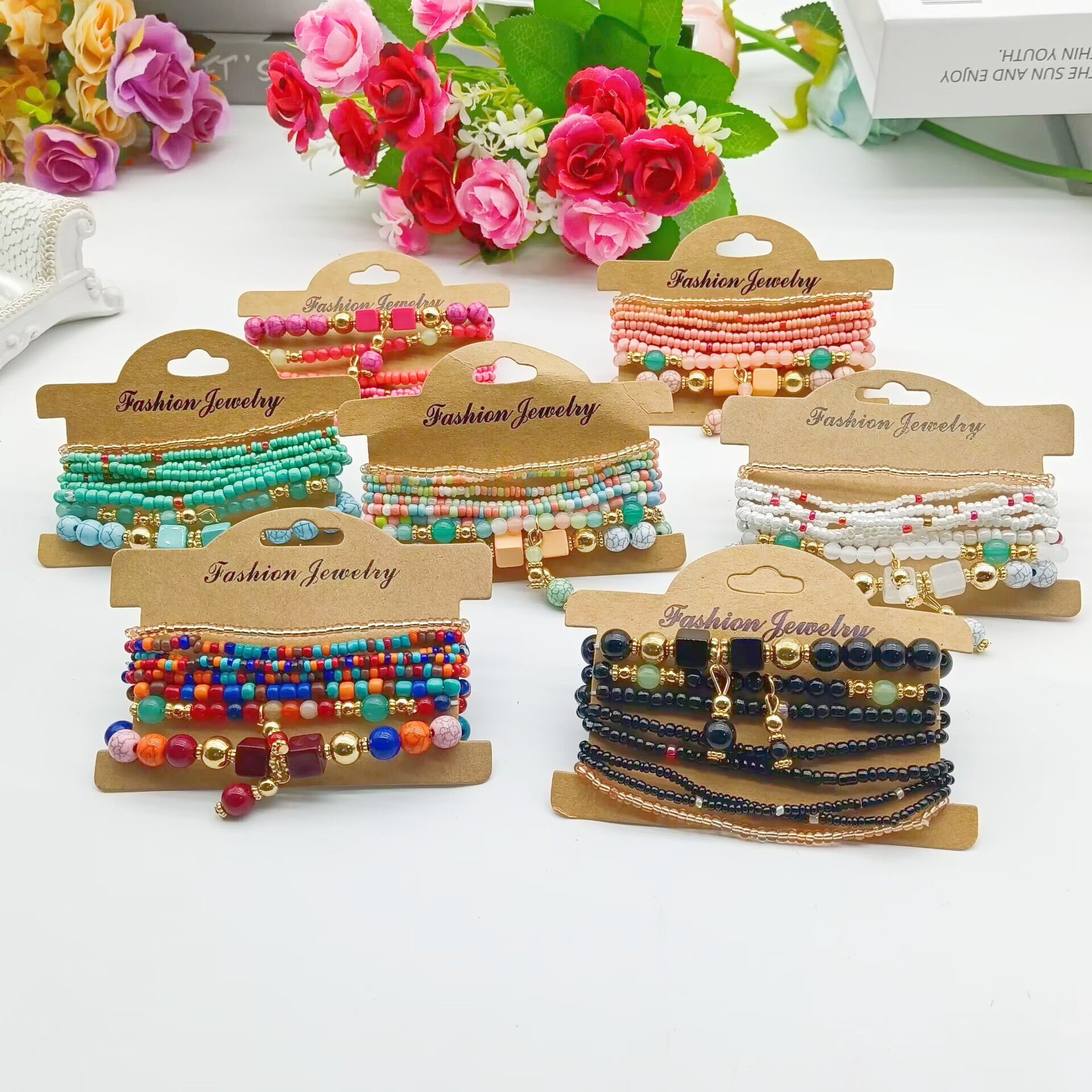 european and american fashion all-match ethnic style bohemian style handmade bead multi-layer women's bracelet bracelet 中文版