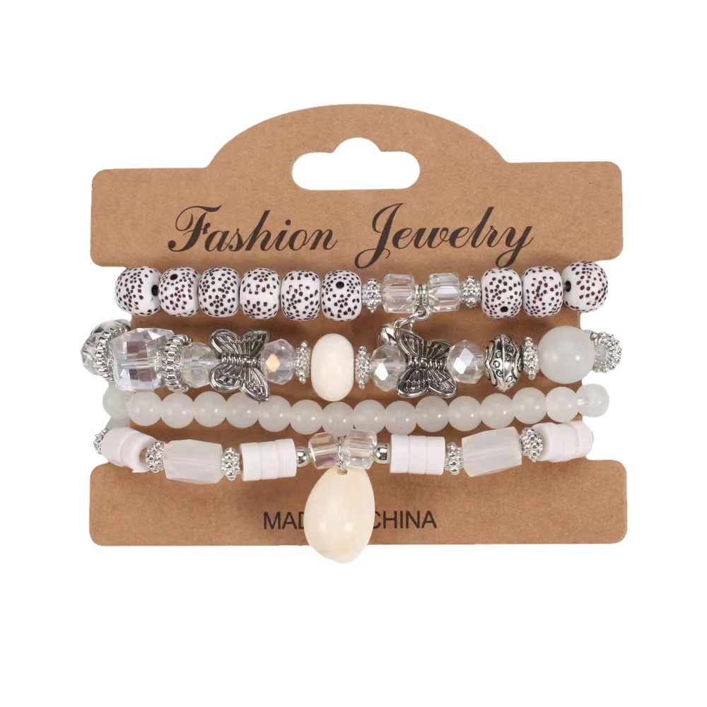 european and american bohemian ethnic bracelet butterfly shell love pendant fashion multi-layer beaded stretch bracelet 中文版