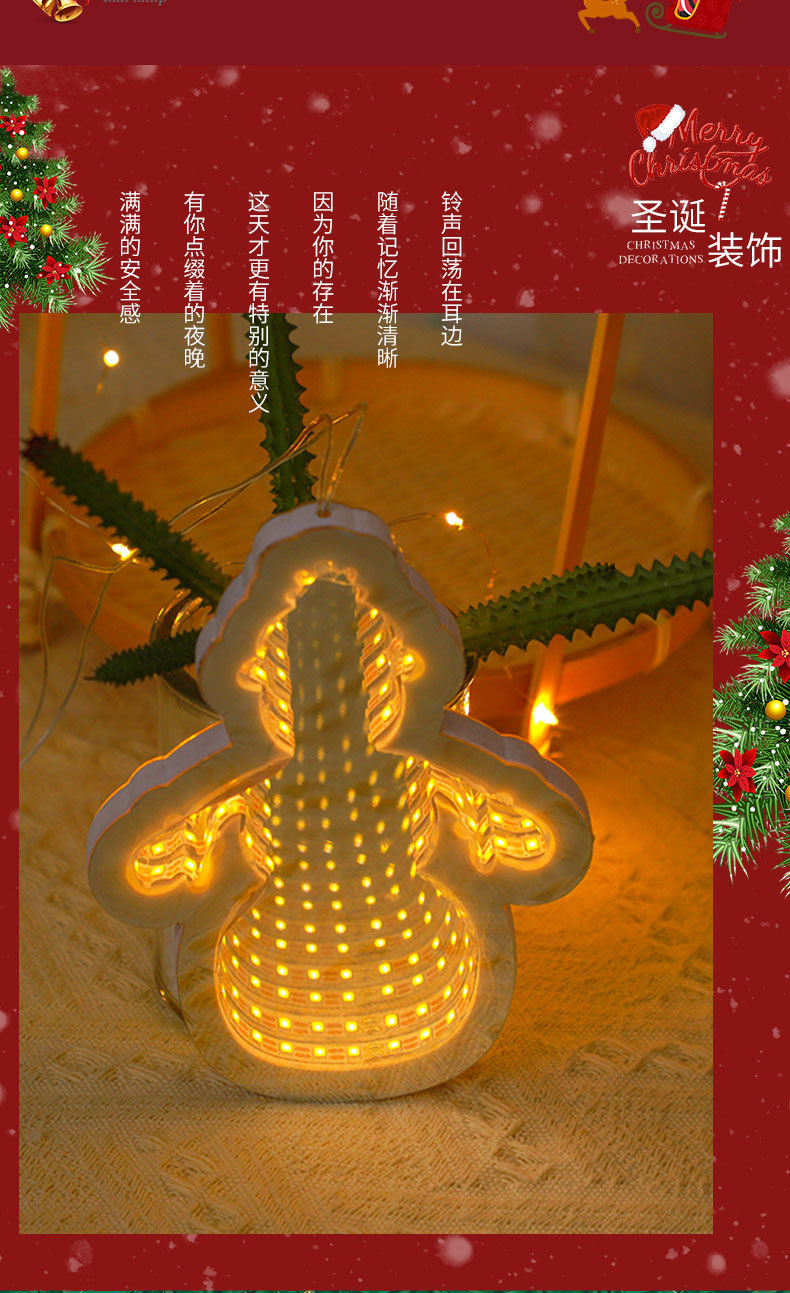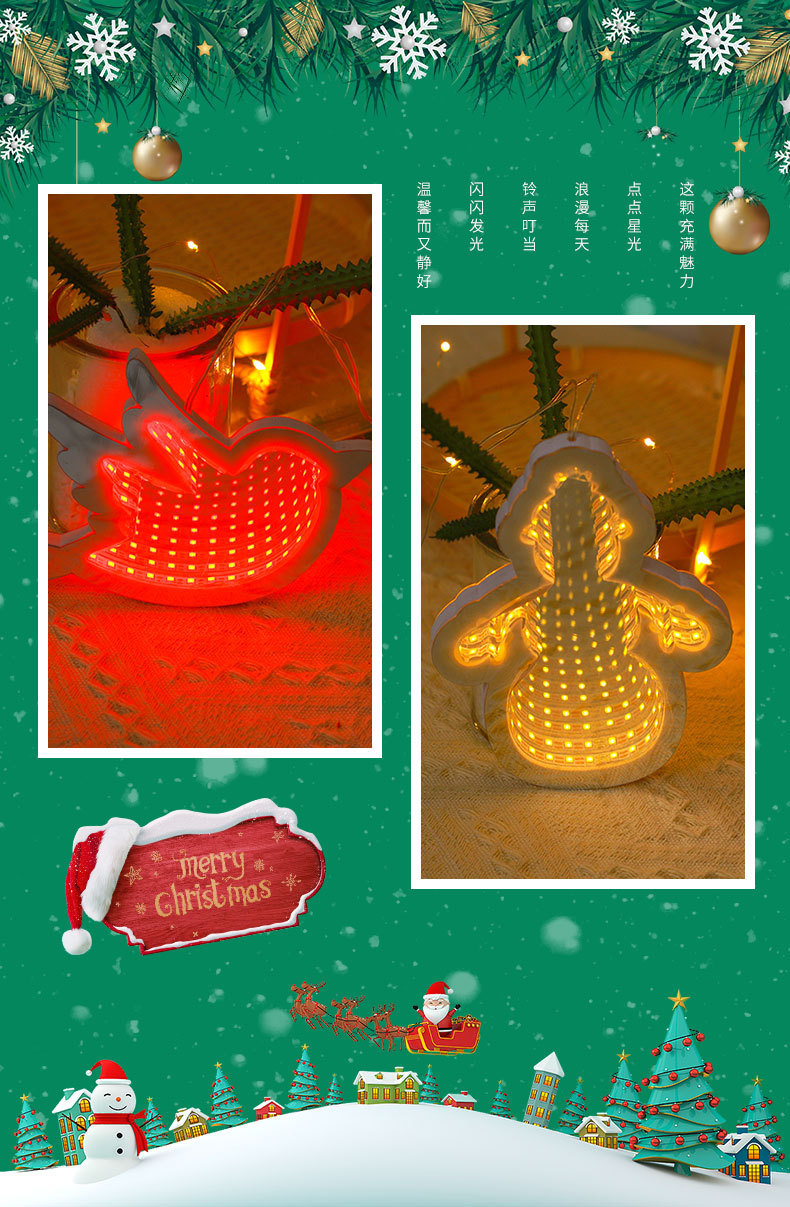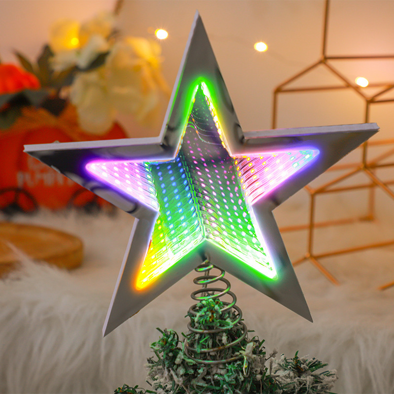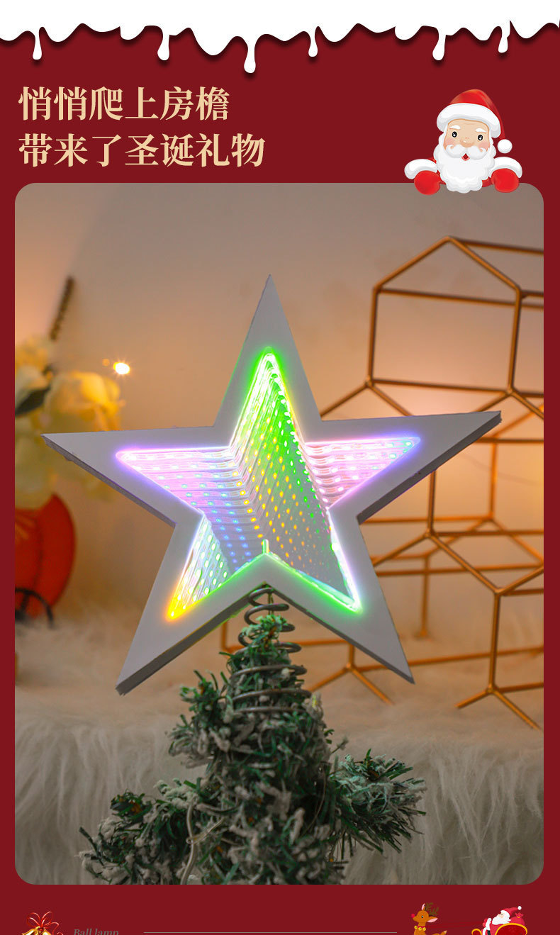 new led christmas tree 3d mirror tunnel light five-pointed star christmas decorations lamp acrylic glowing night lights 中文版