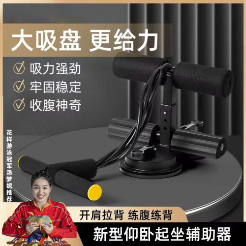 abdominal curling-up device [double suction disc with pulling rope models] black
