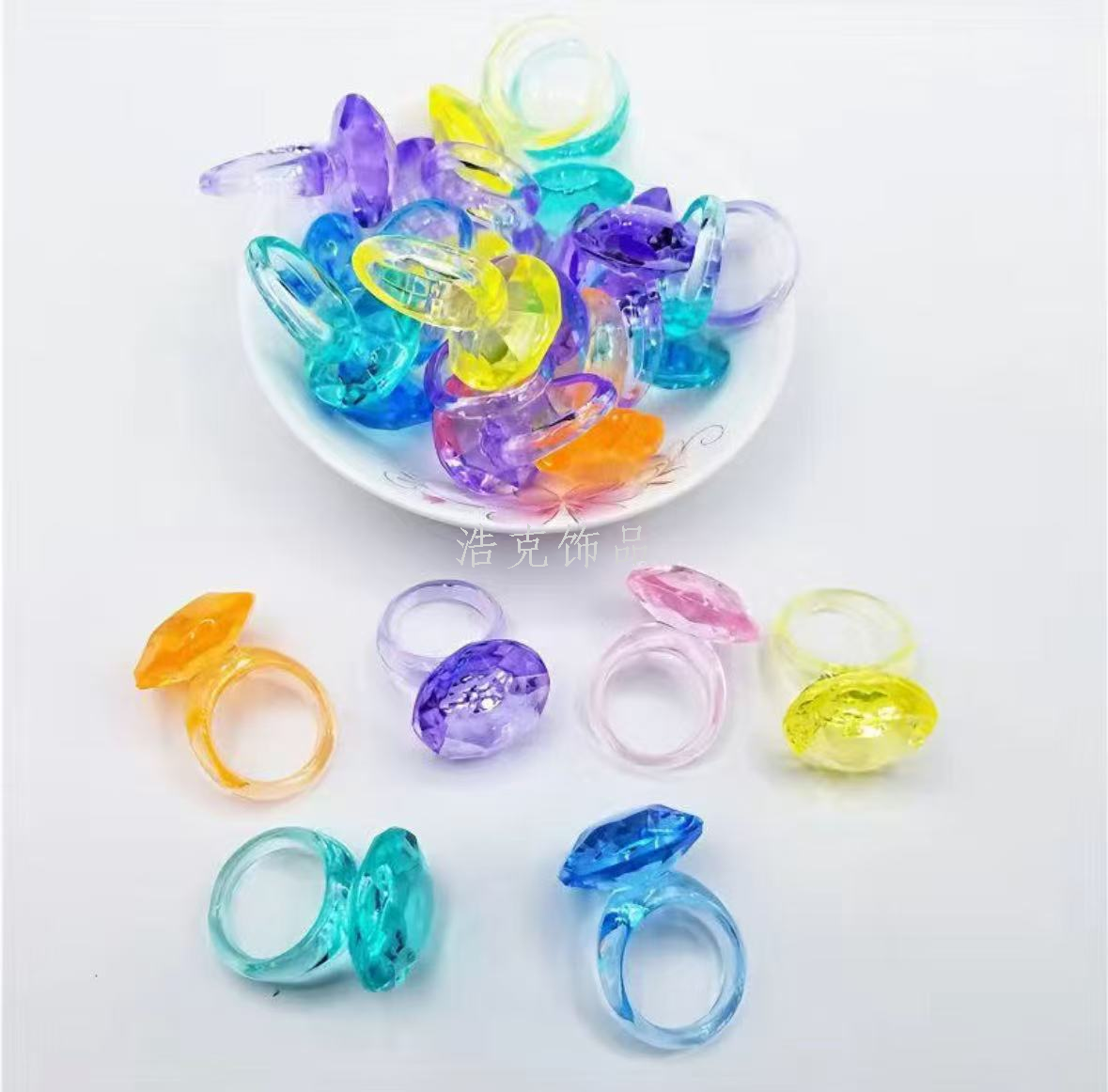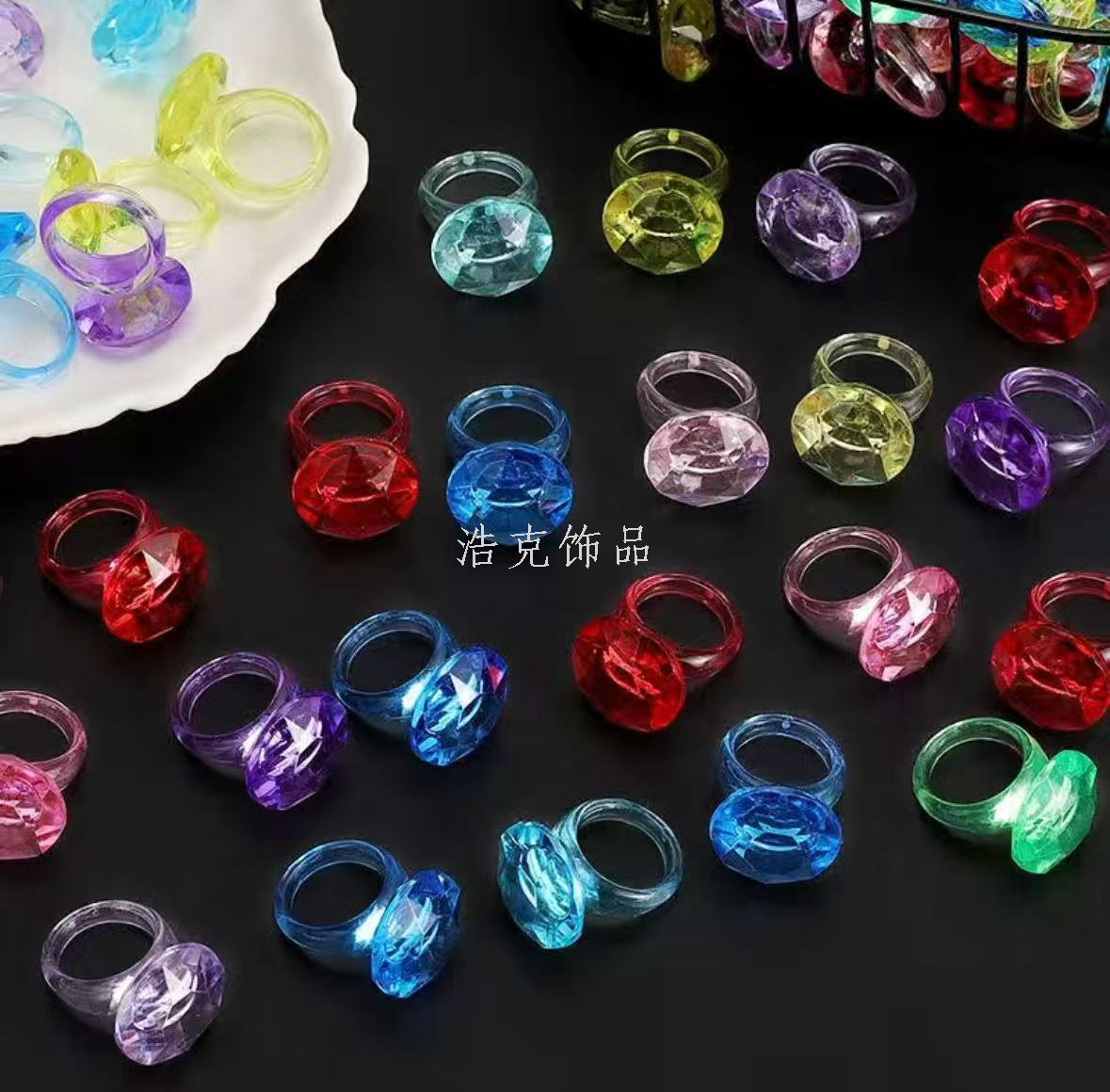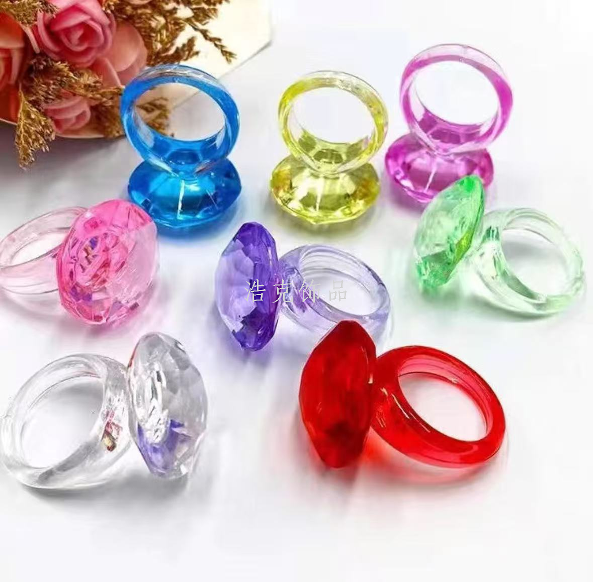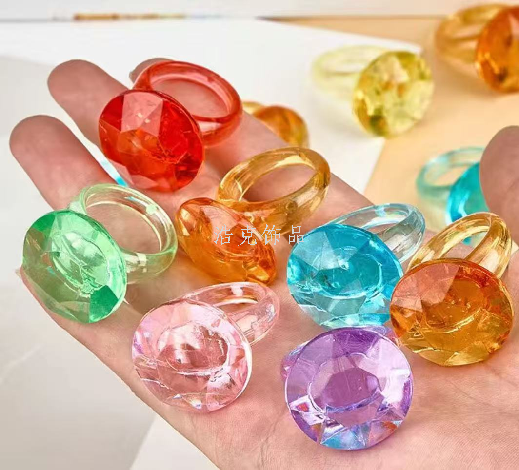 simulation crystal diamond ring colorful crystal ring transparent crystal diy handmade toy children's gem toy 中文版
