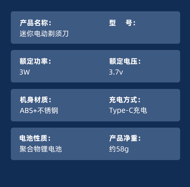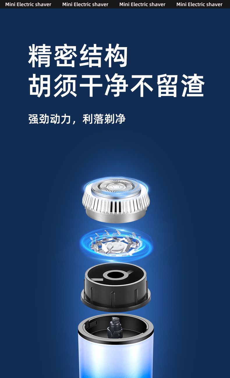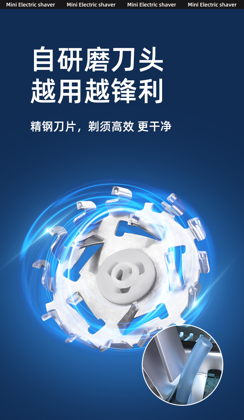 mini rechargeable shaver portable high-speed stainless steel cutter head removable lock and load spray 中文版
