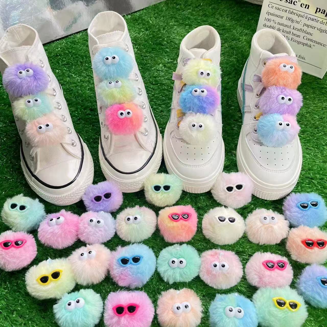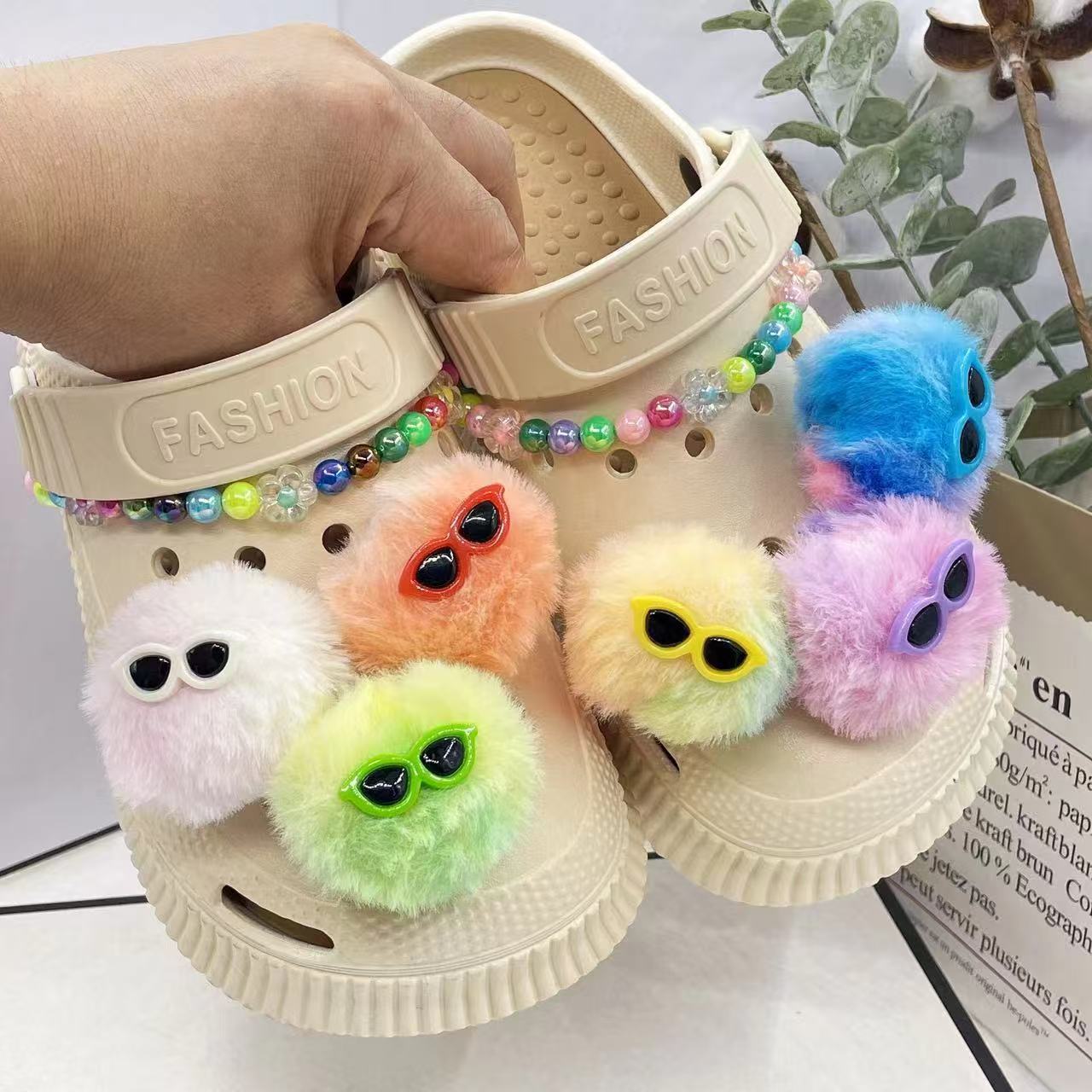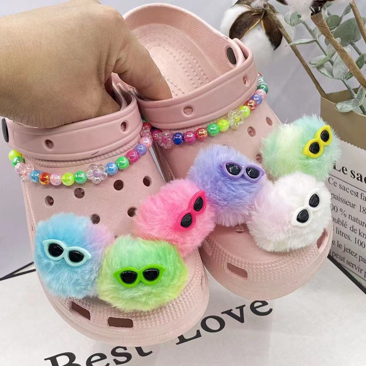 plush gradient fur ball color dopamine fur ball hole shoes shoe ornament shoe buckle cell phone bag fuzzy ball pendant 中文版
