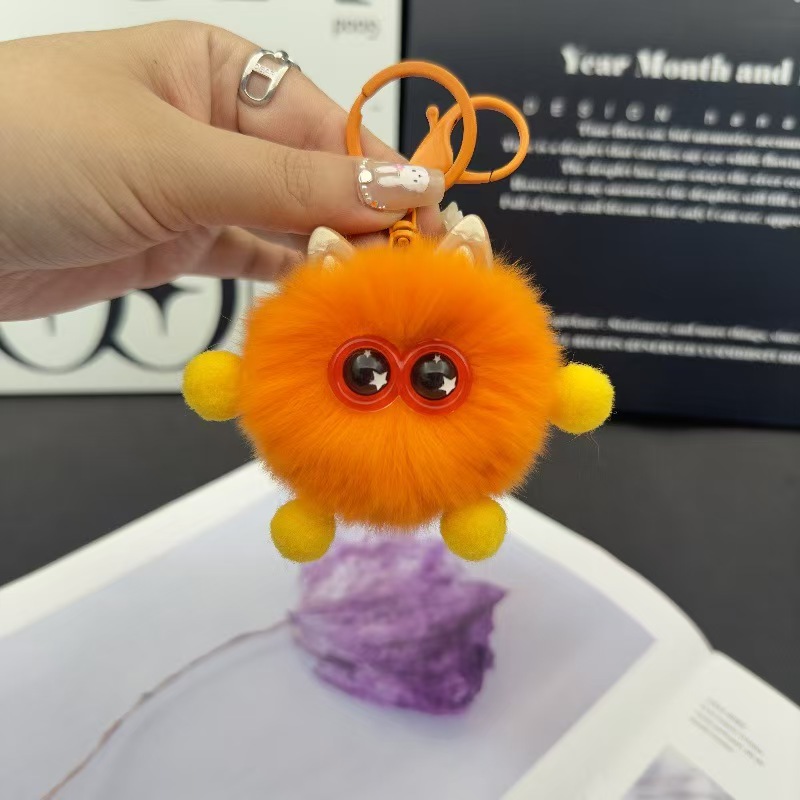 cute rex rabbit fur big eye decompression spring robot package pendant schoolbag pendant cartoon doll keychain 中文版