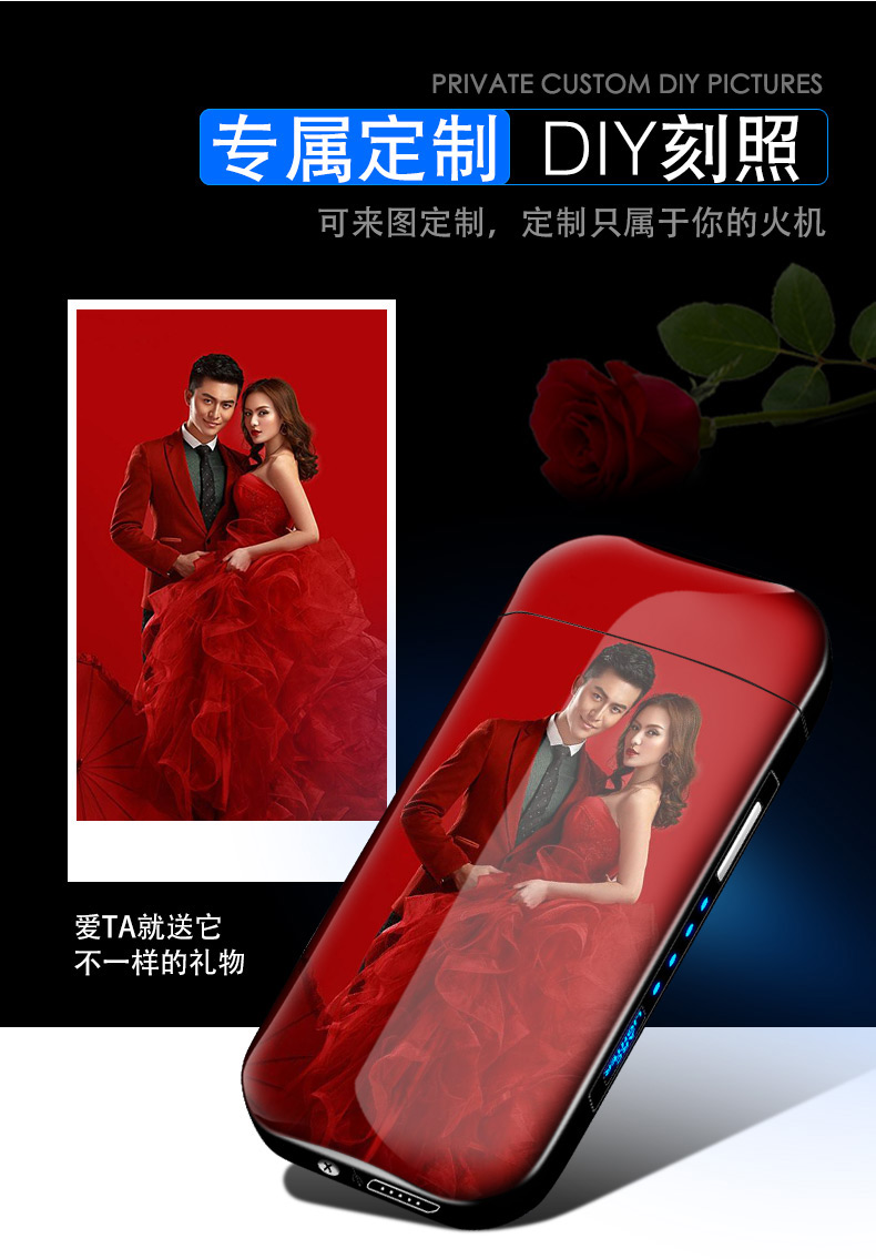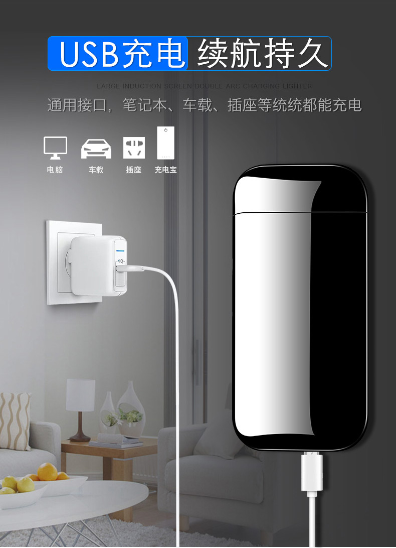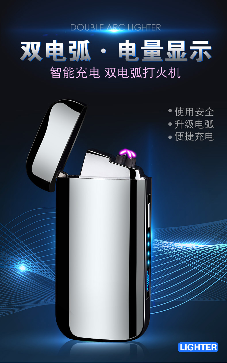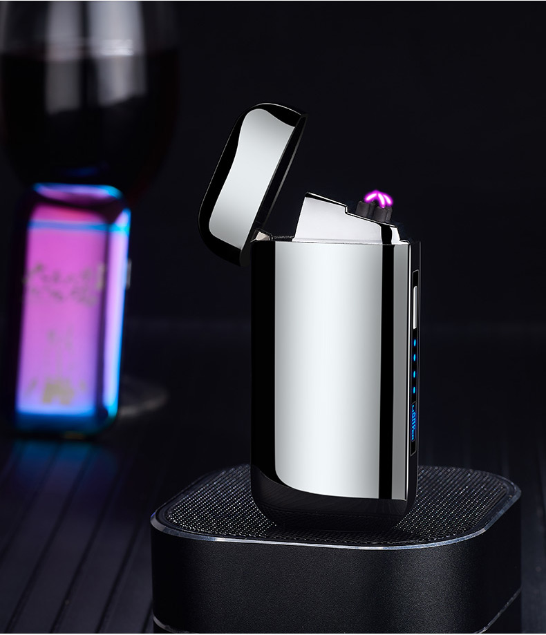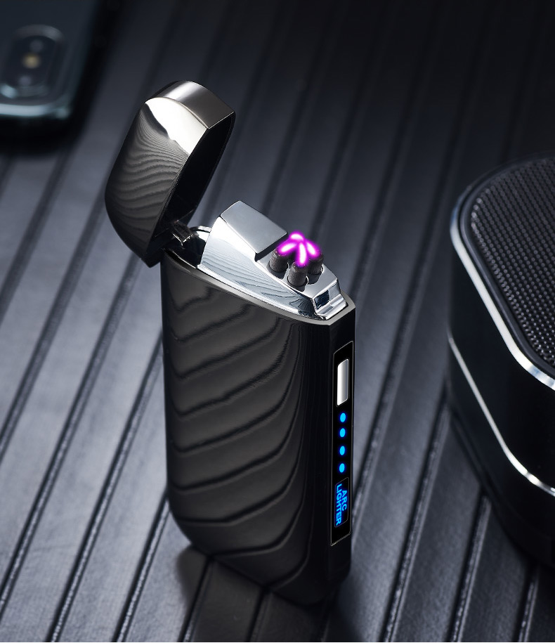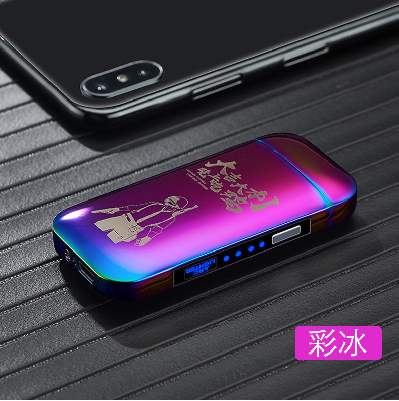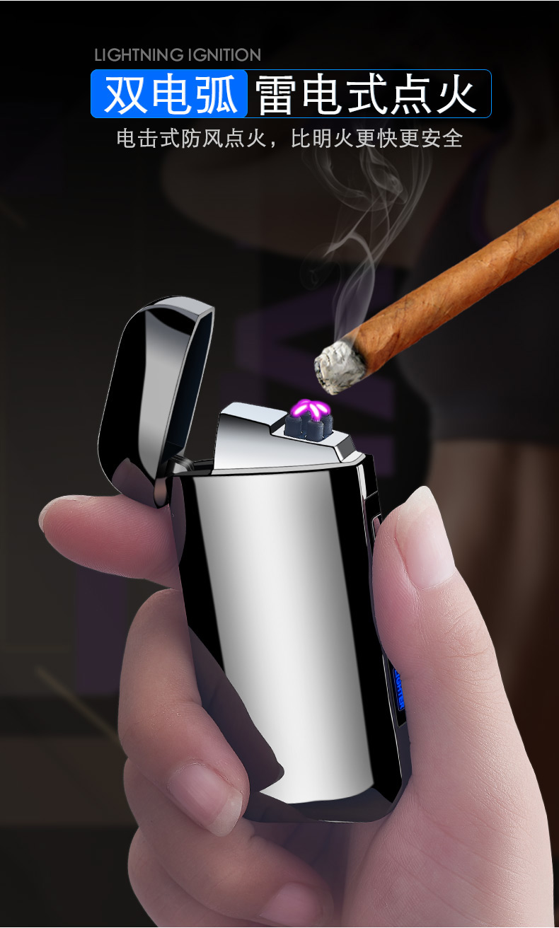 creative metal usb pulse double electric arc lighter factory direct sales personalized windproof power display lettering 中文版