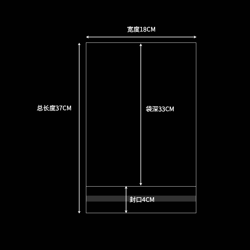 width 18 * inner length 19 + sealing 3 * double layer 9 silk/100 pieces