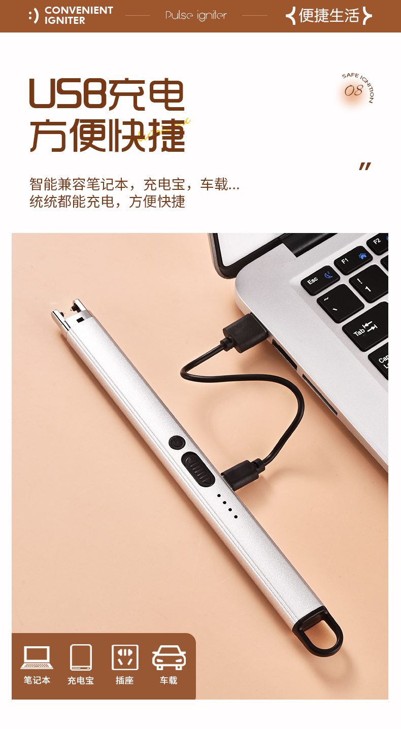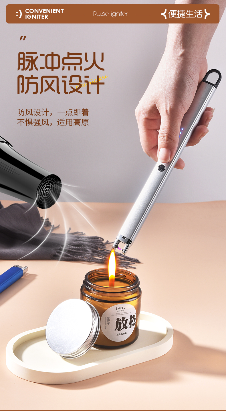 household kitchen windproof igniter electronic charging lighter aromatherapy candle gas stove lighter 中文版