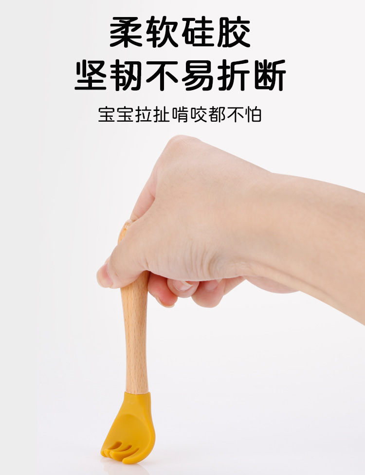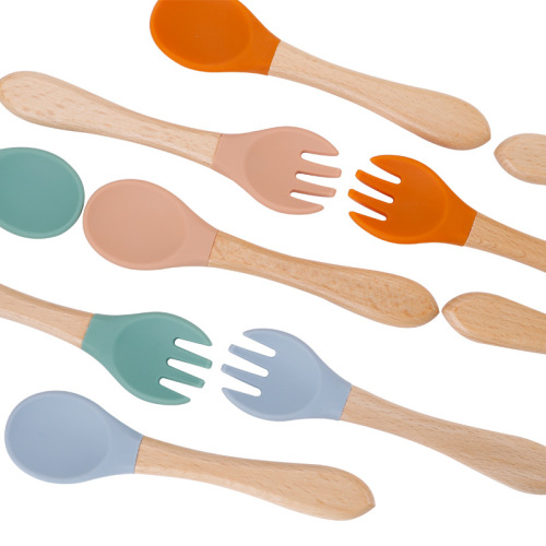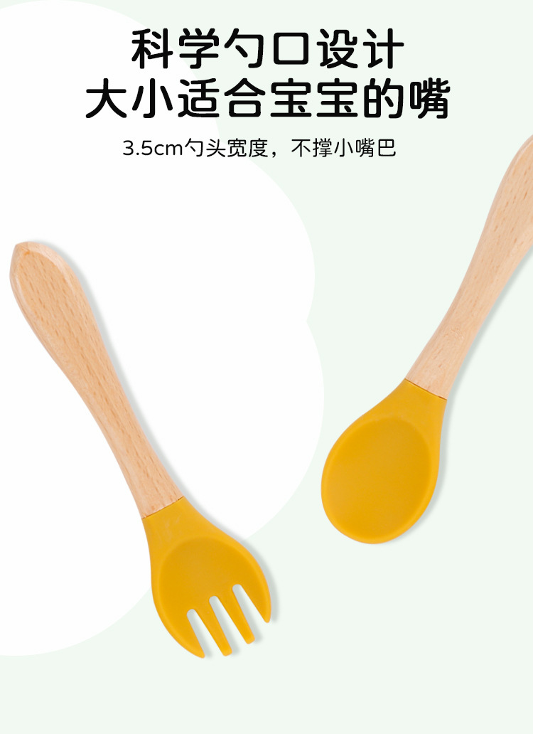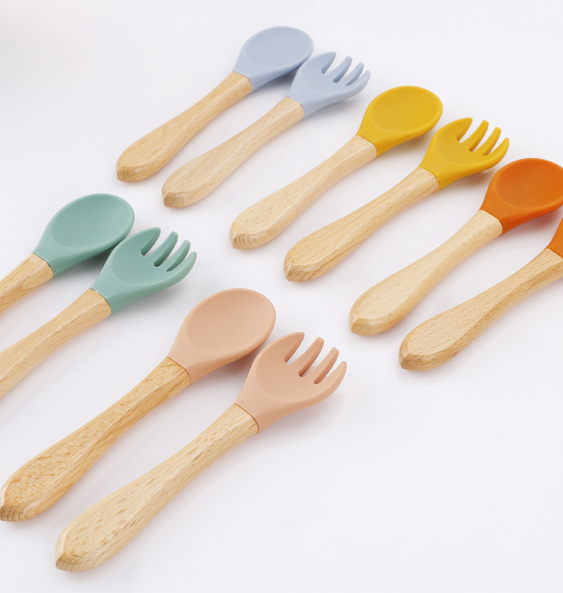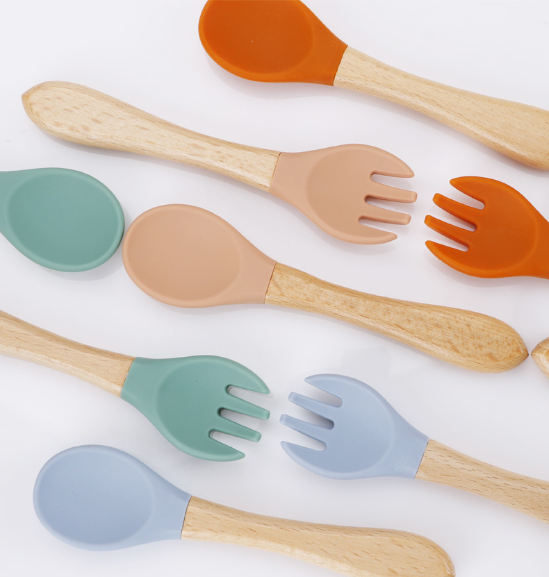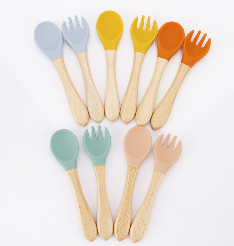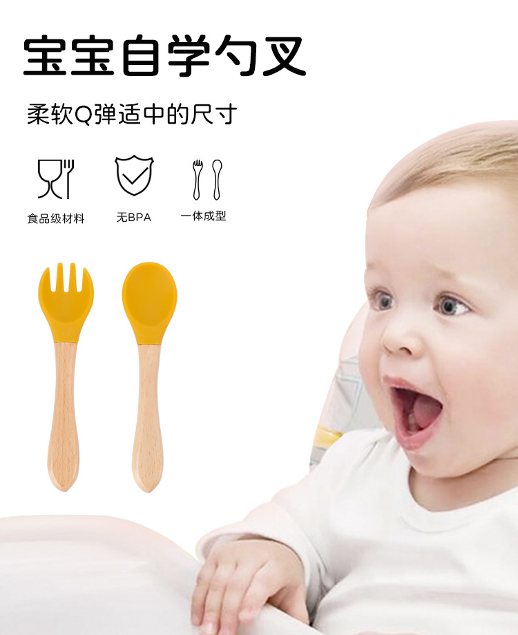 maternal and child supplies silica gel fork baby water feeding small spoon children's tableware eating solid food bowl wooden handle silicone spork