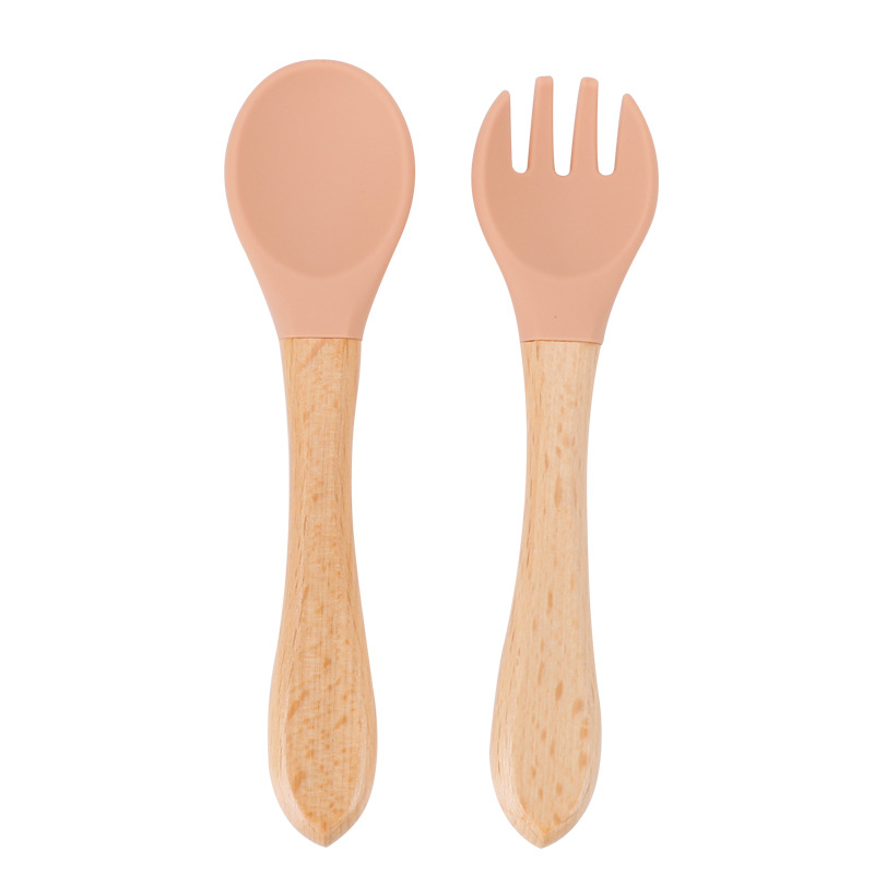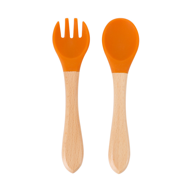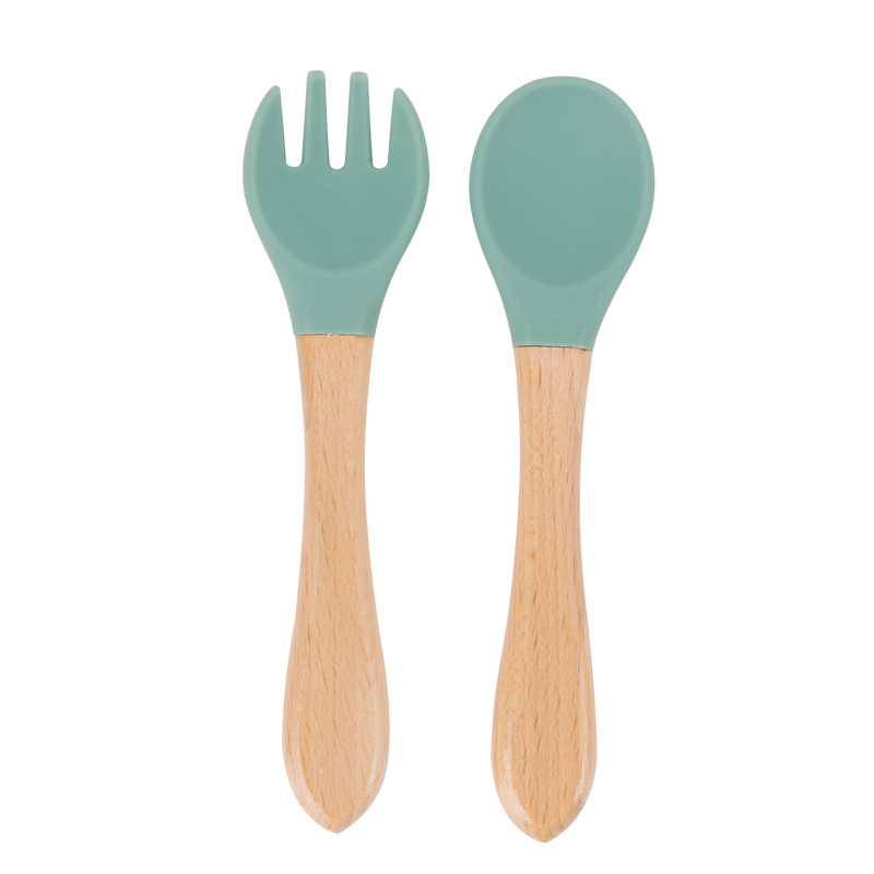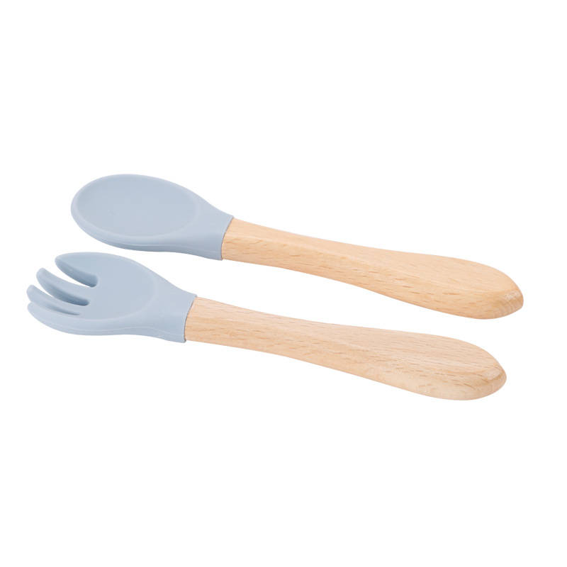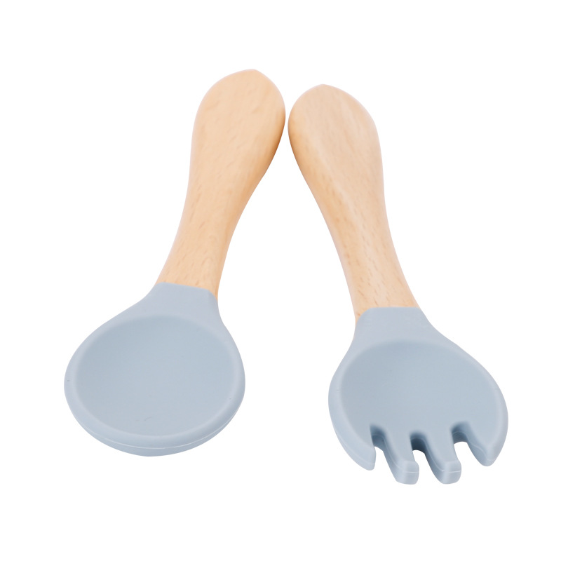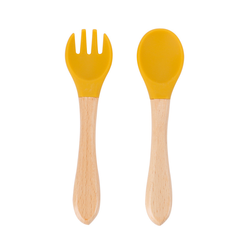 maternal and child supplies silica gel fork baby water feeding small spoon children's tableware eating solid food bowl wooden handle silicone spork