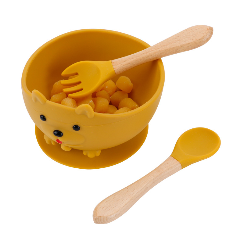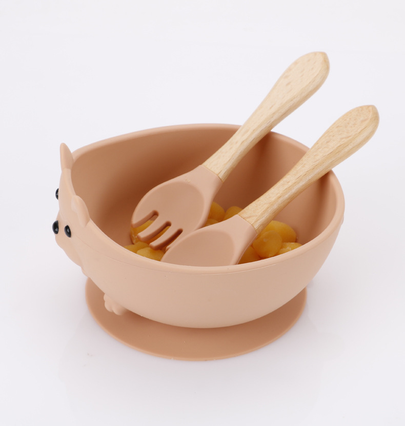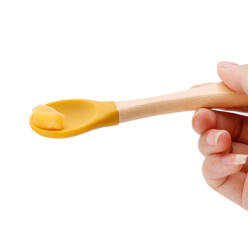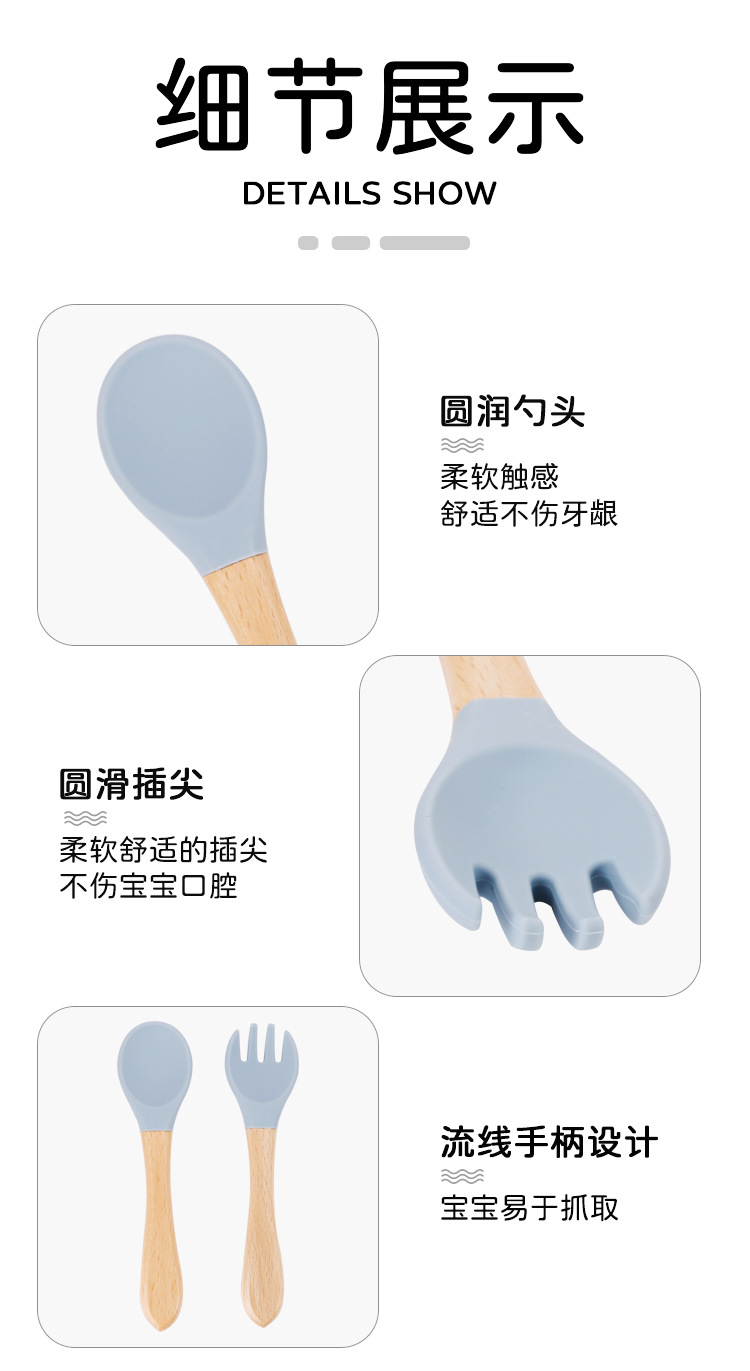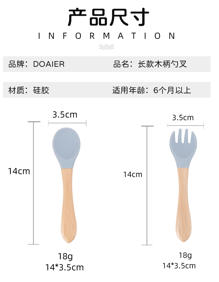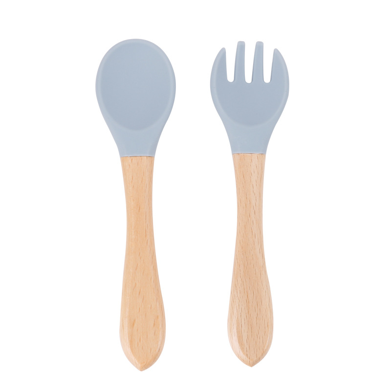 maternal and child supplies silica gel fork baby water feeding small spoon children's tableware eating solid food bowl wooden handle silicone spork