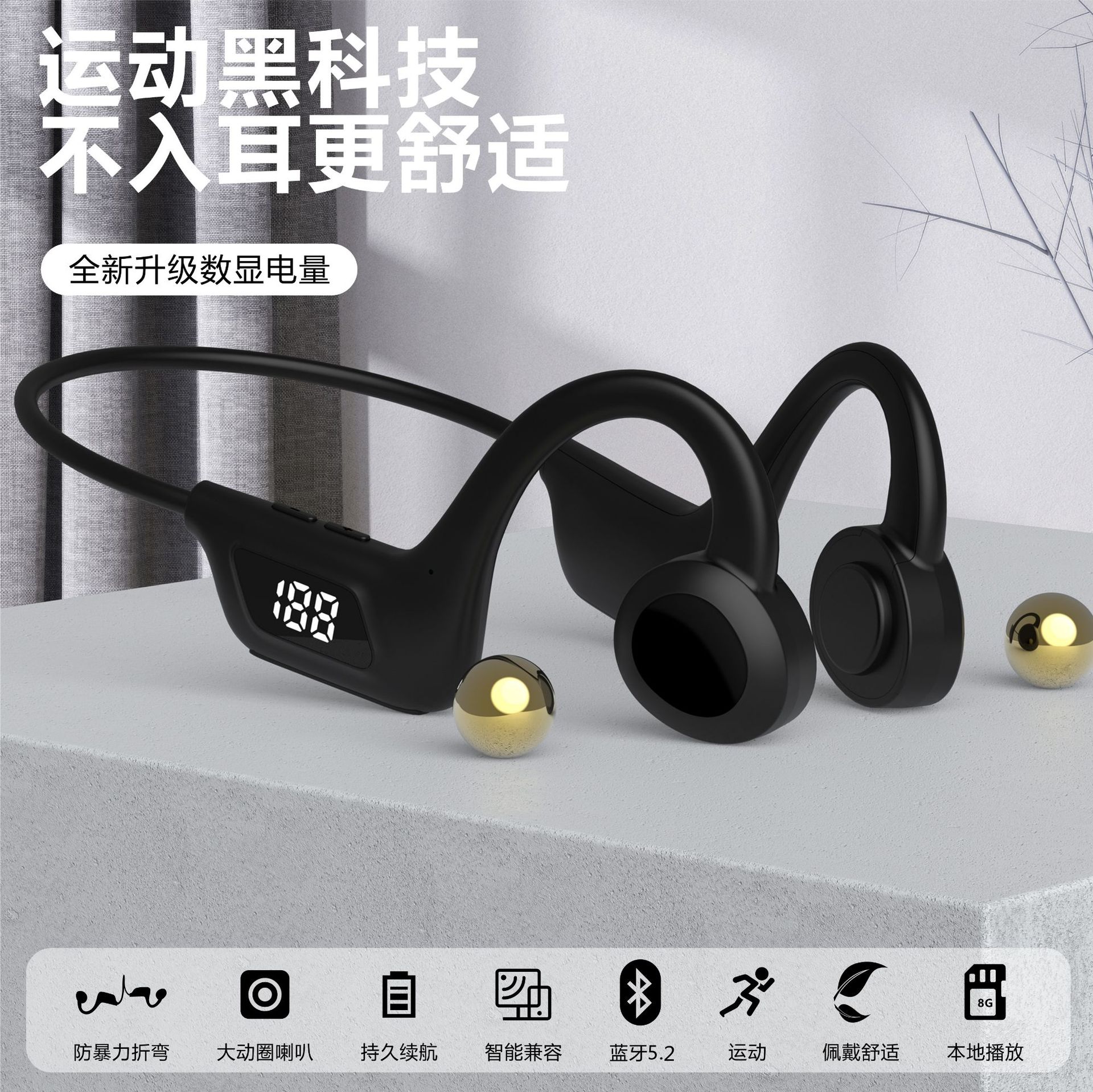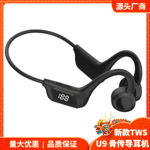 new u9 bone conduction sports wireless bluetooth headset with digital display pluggable memory card air conduction bluetooth headset