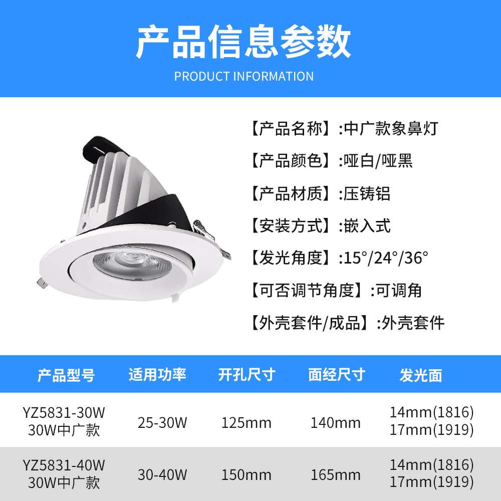 cross-border cob trunk shell lamp lighting embedded p30 ceiling lamp ceiling downlight kit foreign trade customization 中文版