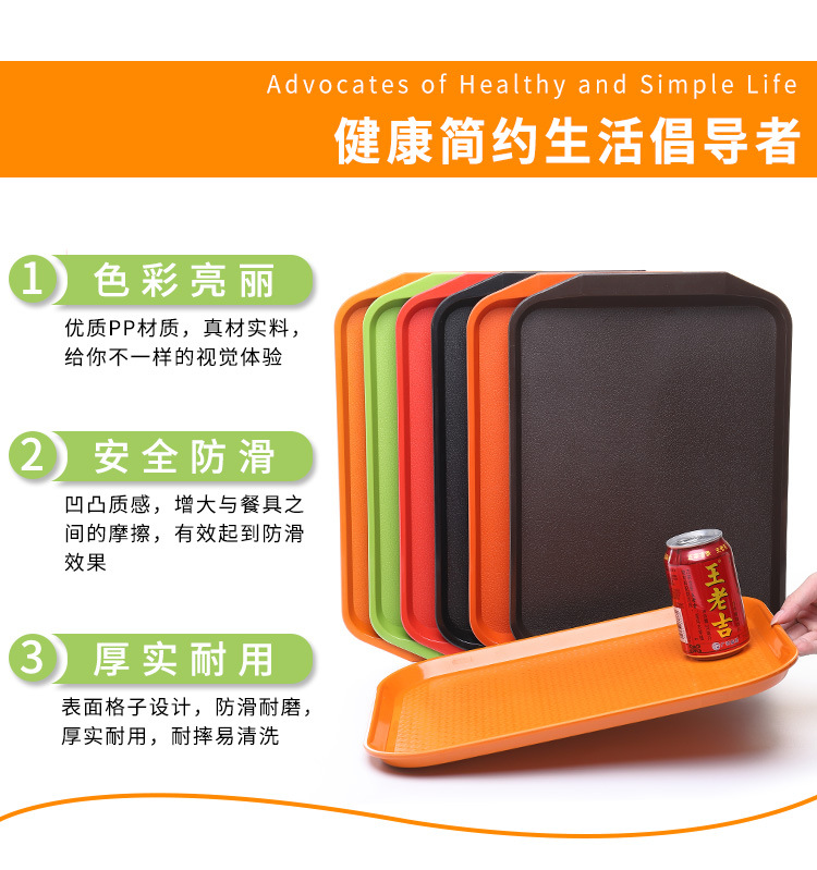 thickened commercial plastic anti-slip tray chinese rectangular fast food plate hotel tableware kfc canteen plate 中文版