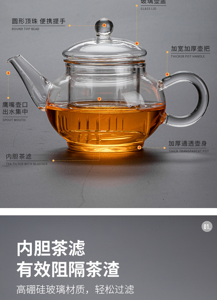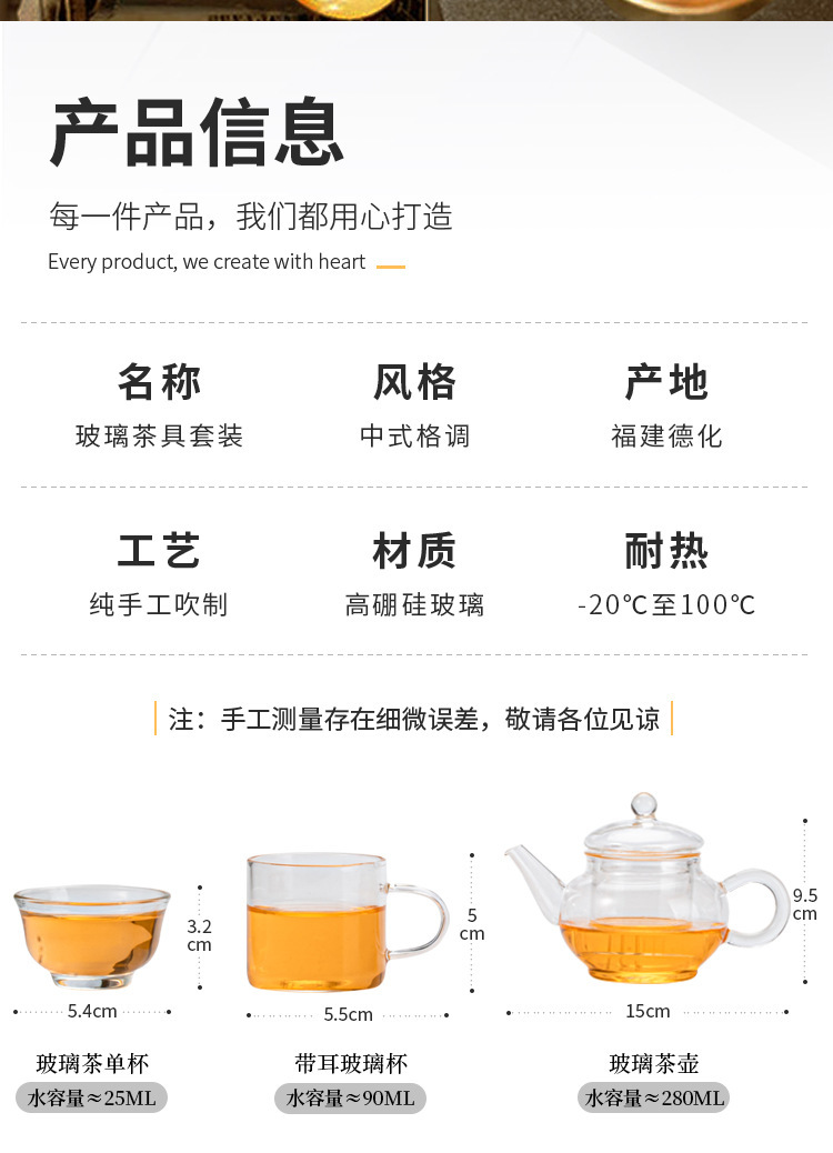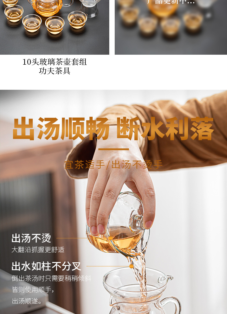 kung fu tea set glass teapot full set 10 pieces suit