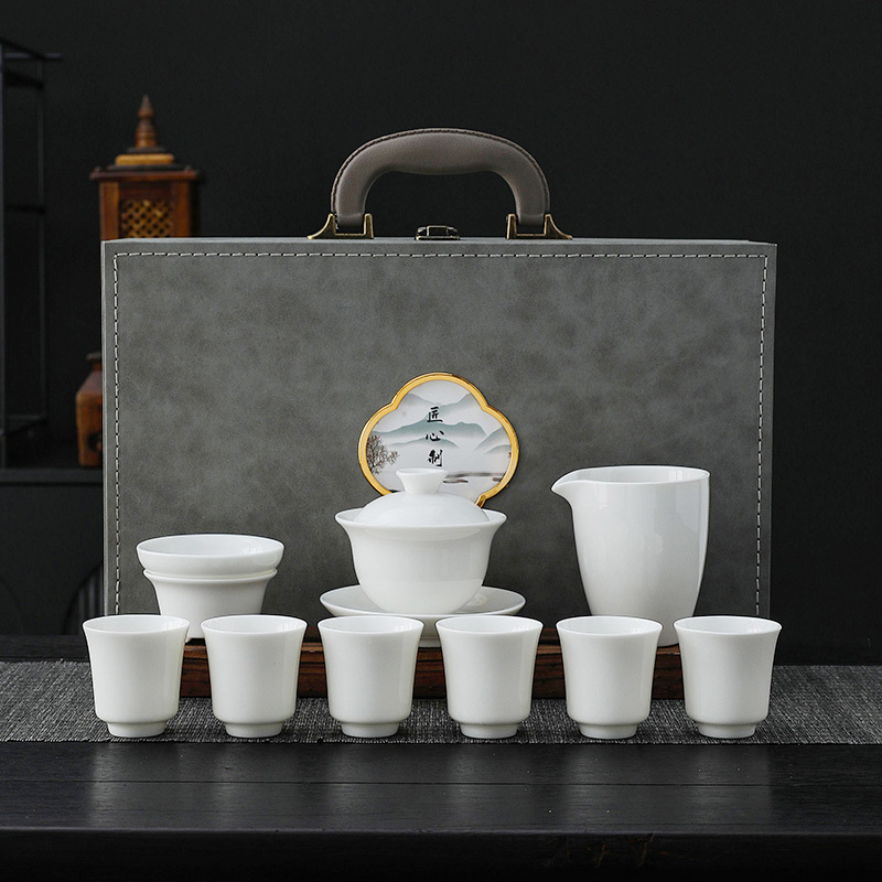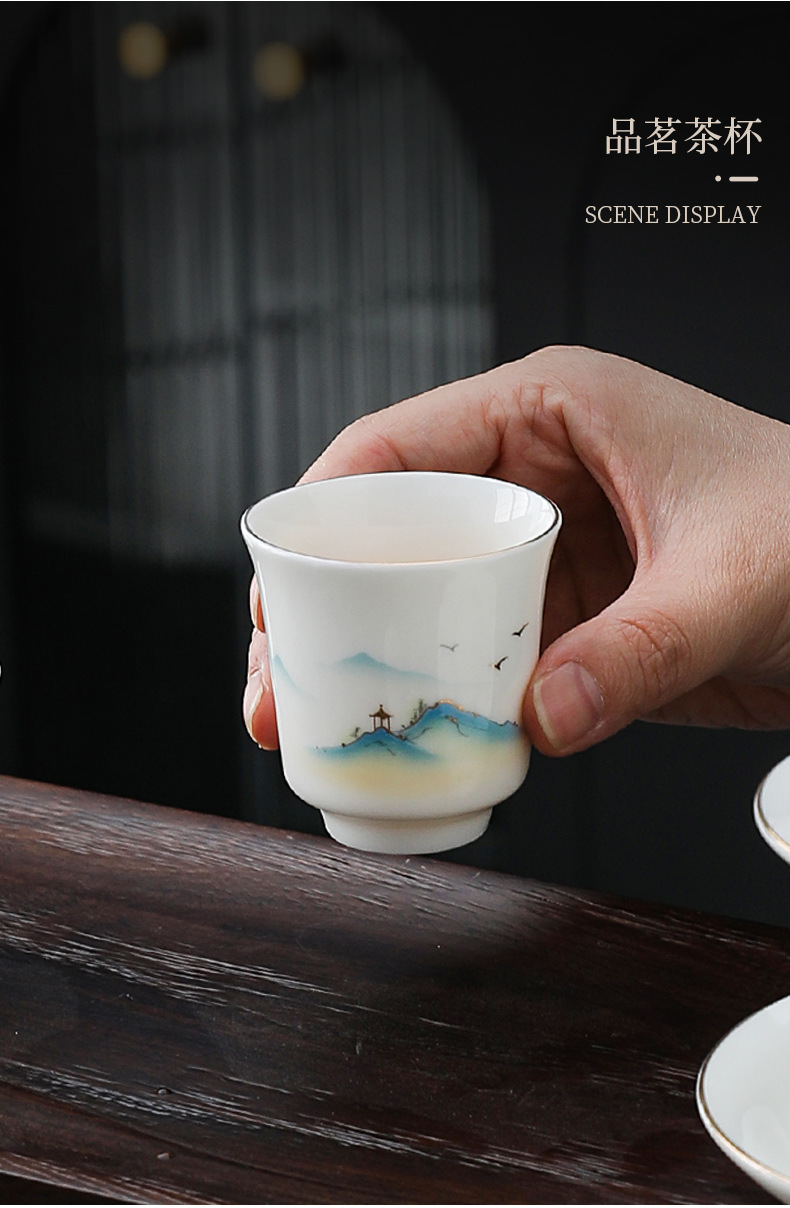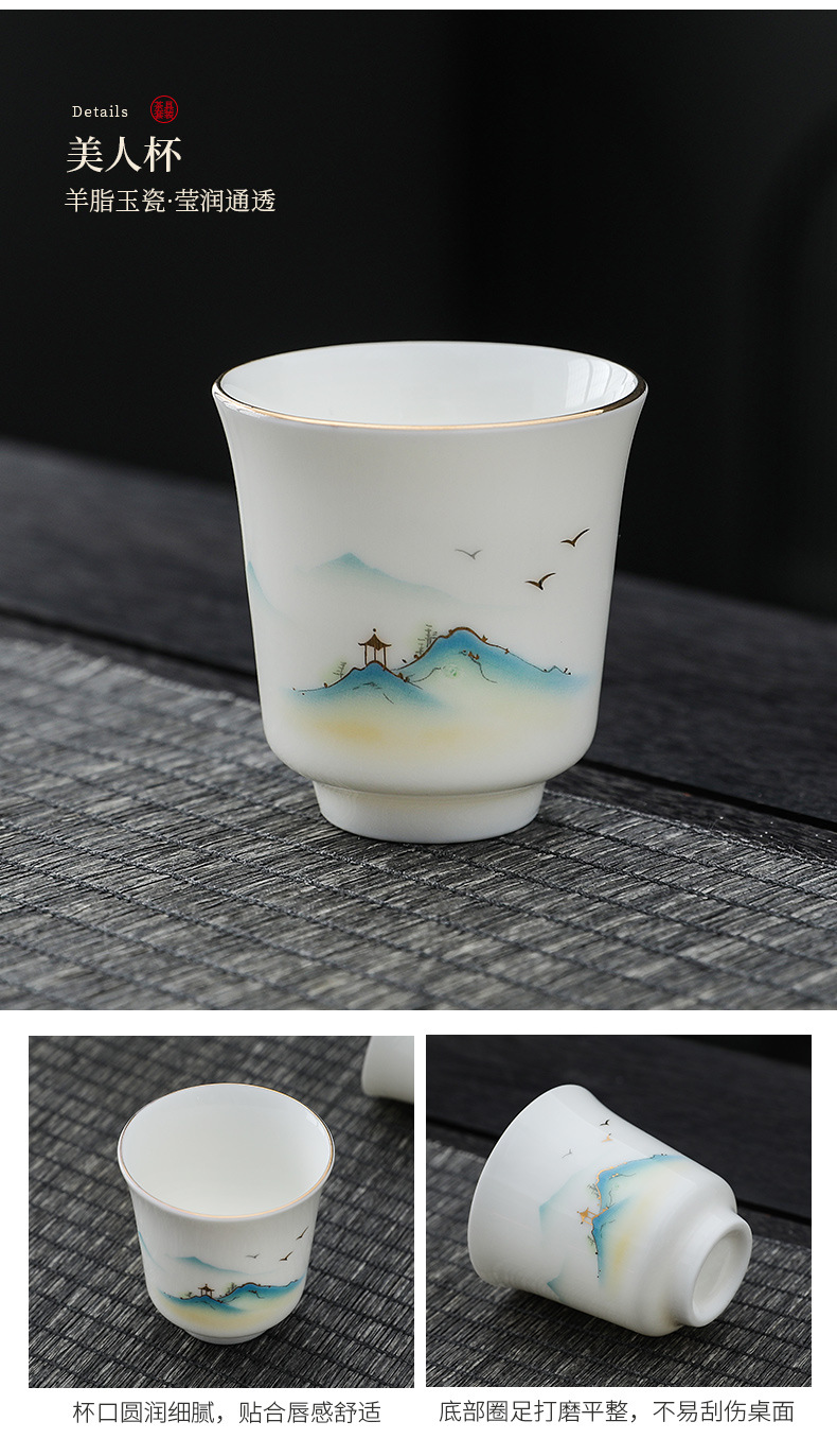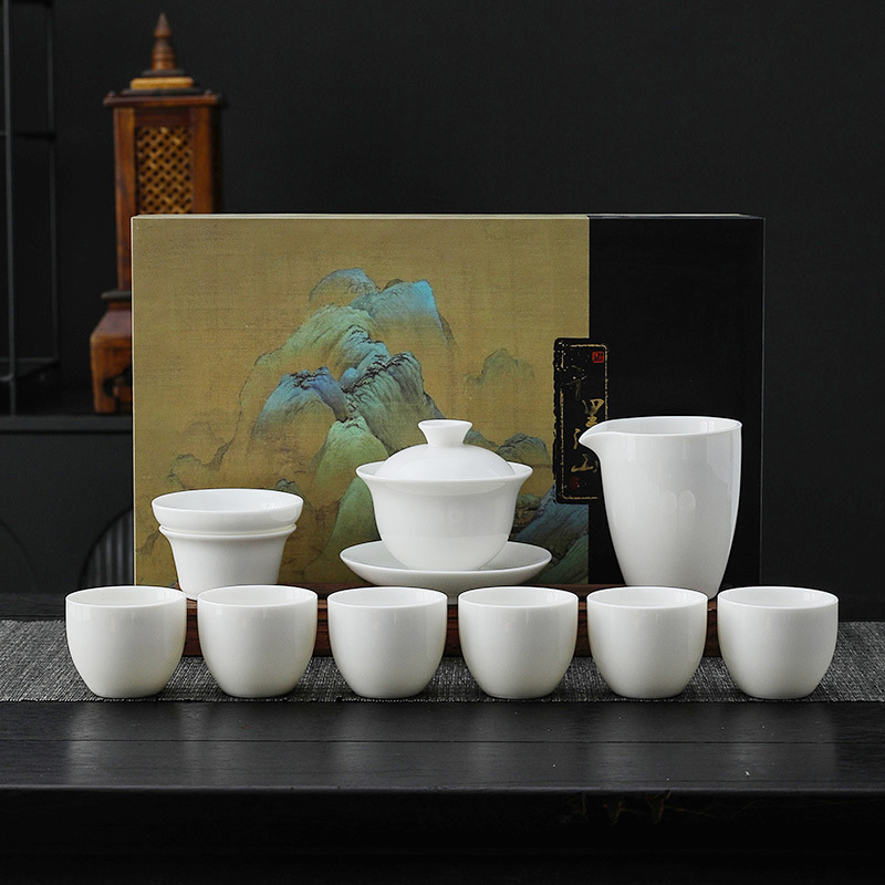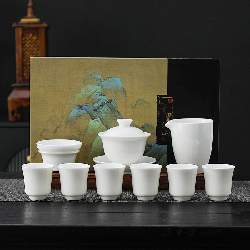 white jade-10 head pure white dragon egg cup-thousand-li landscape gift box