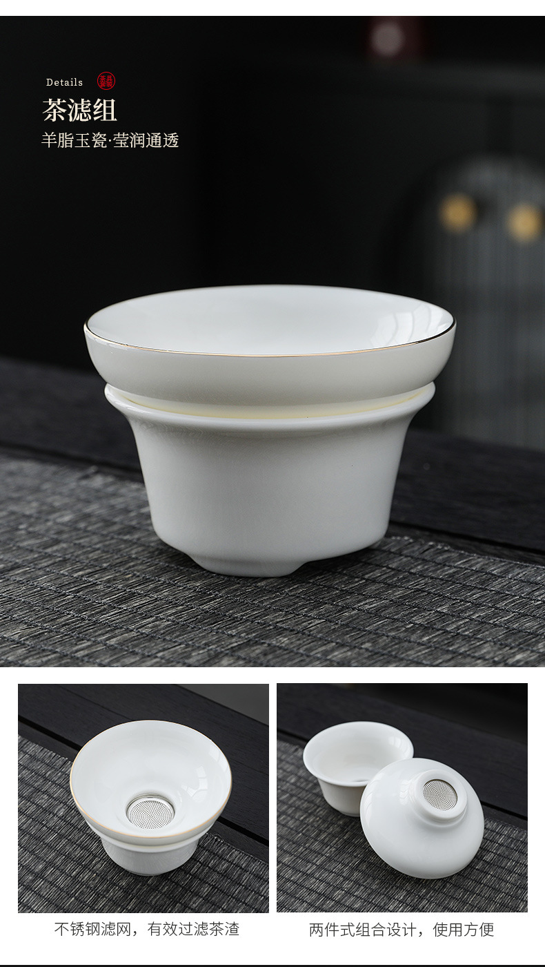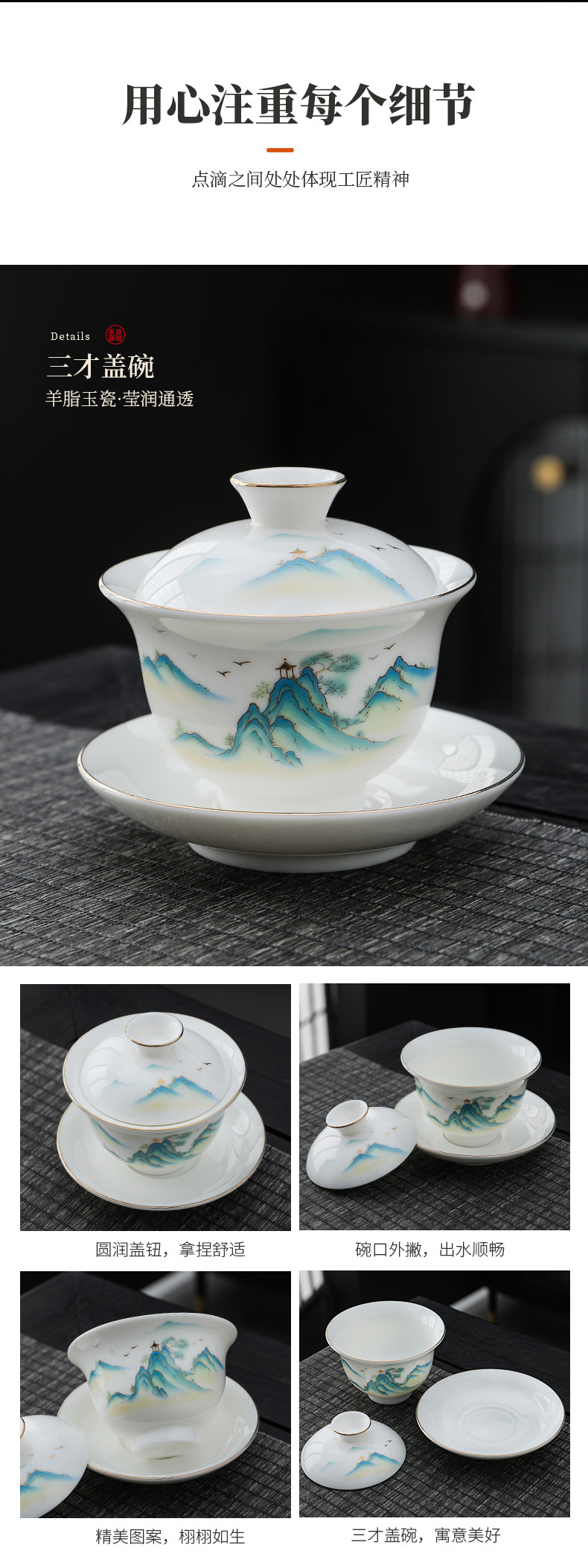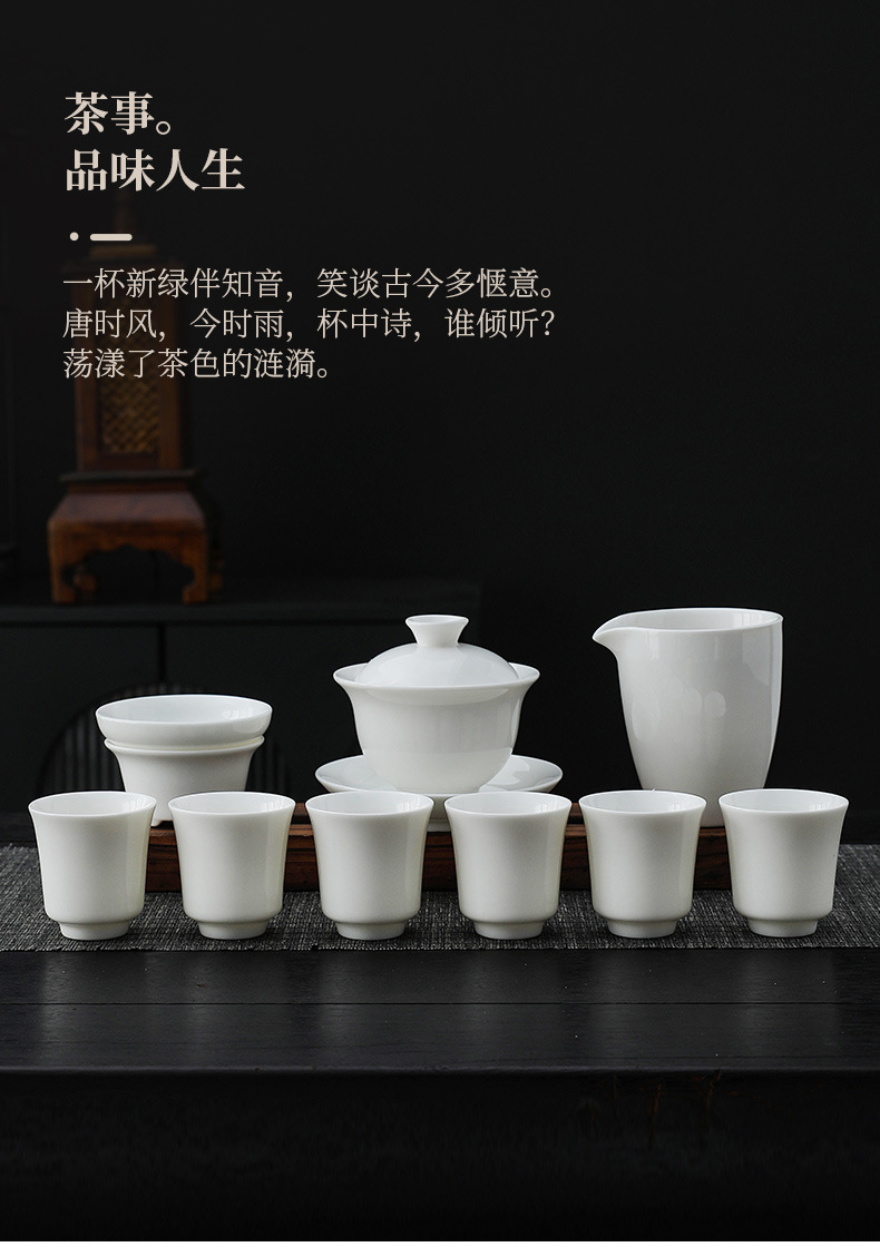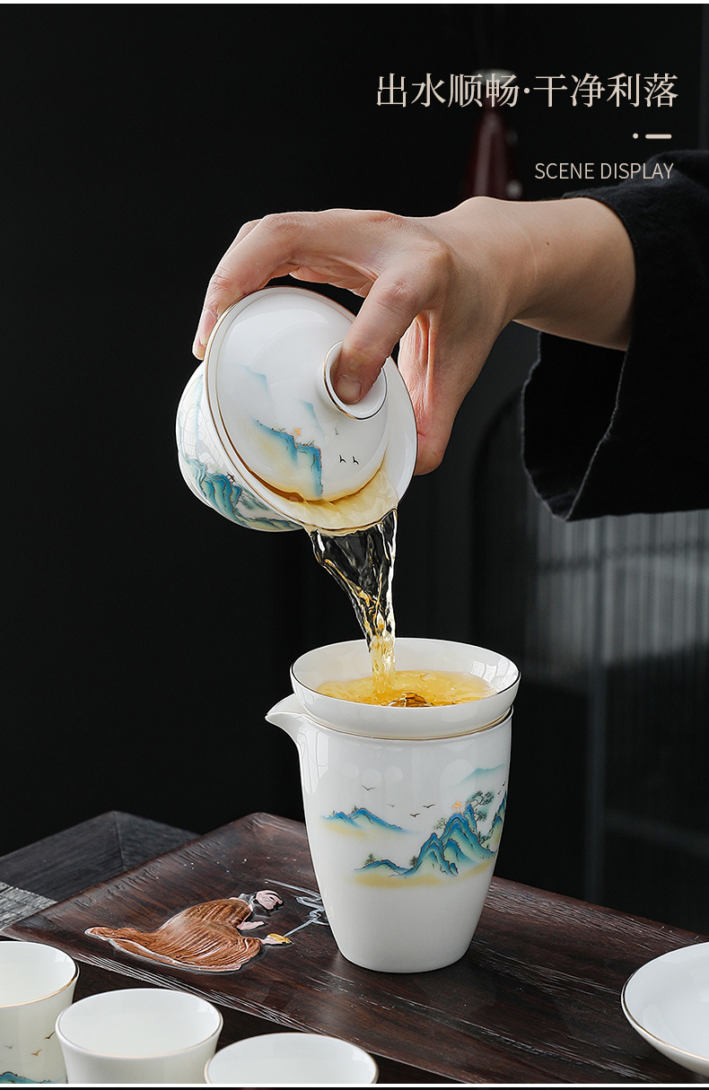 white jade-10 head pure white dragon egg cup-thousand-li landscape gift box