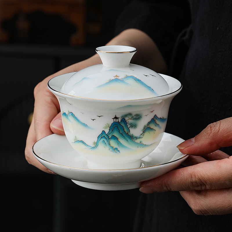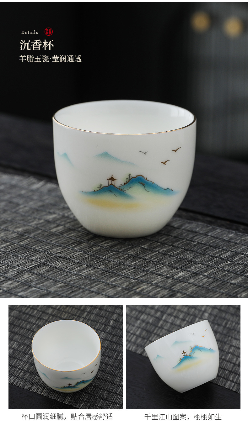 white jade-10 pure white bamboo cup-thousand-li landscape gift box