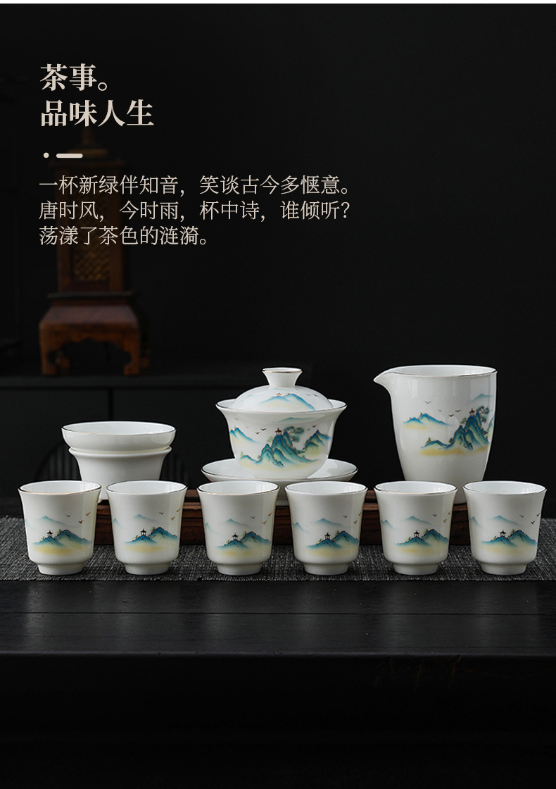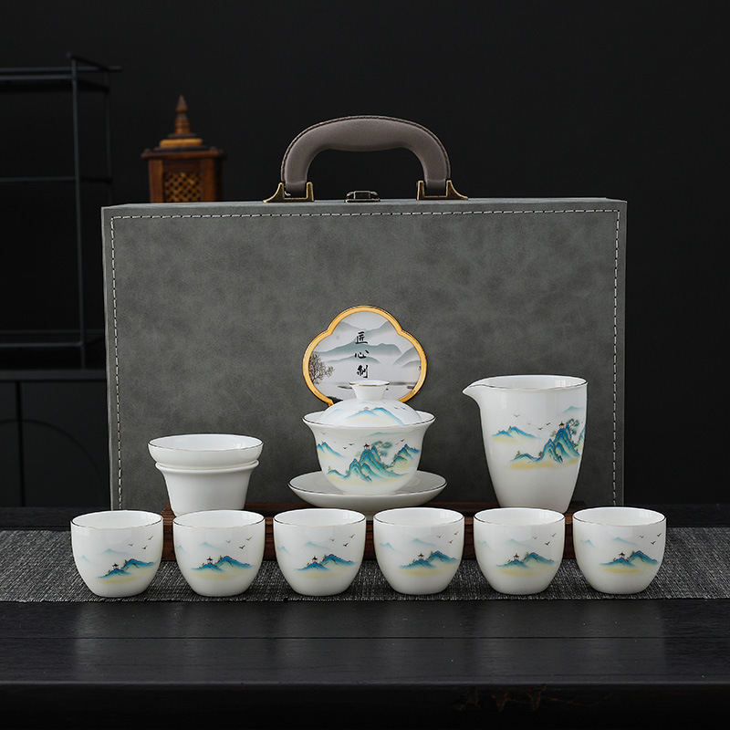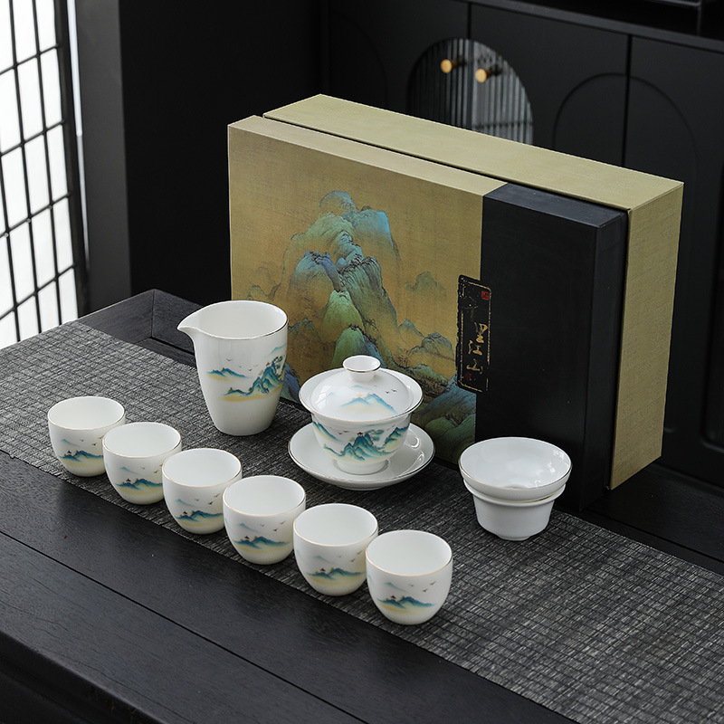 white jade 10 pieces of gold-jinting landscape bamboo rhyme-thousand-li landscape gift box
