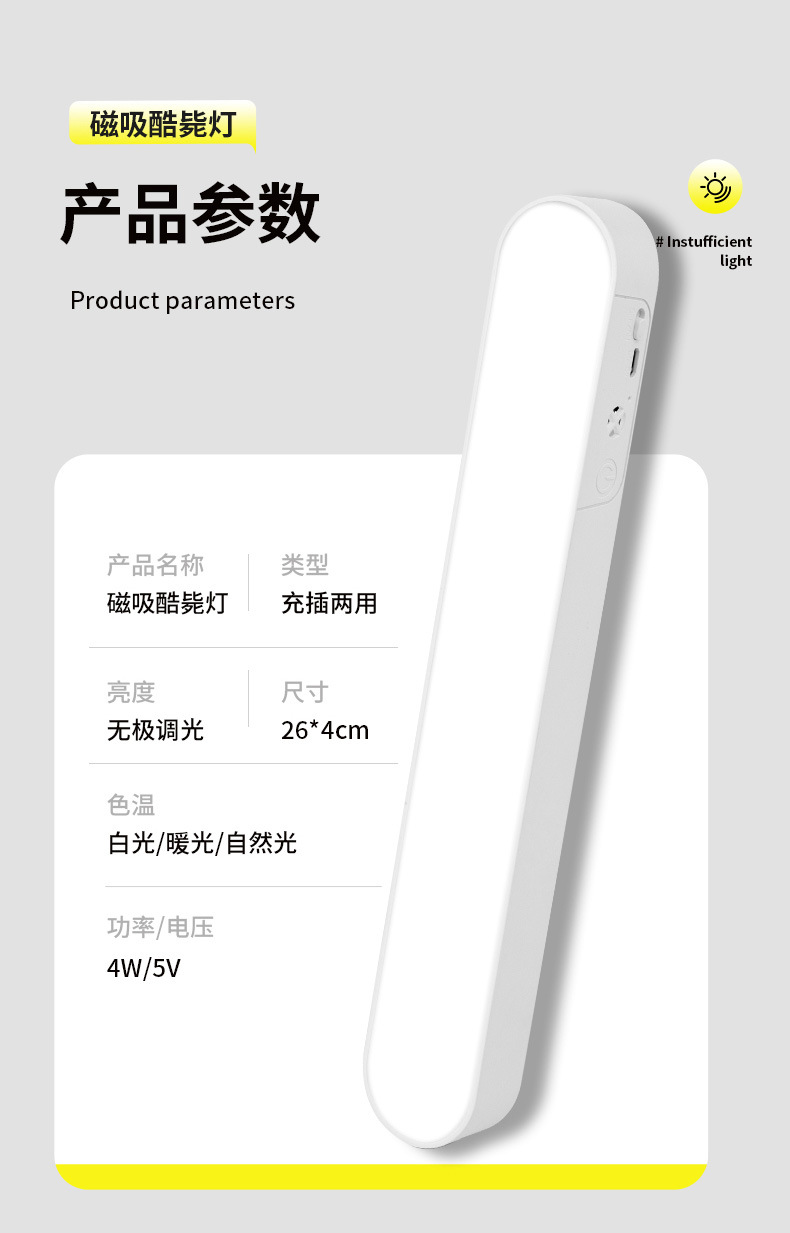 26cm rechargeable [dual-purpose charging and plug-in/three-speed color temperature/dimming and color-changing] send data cable