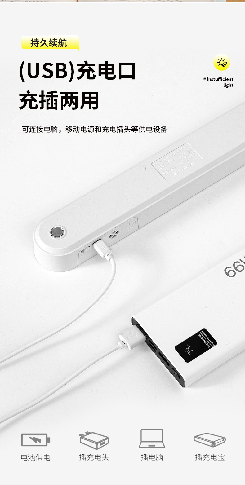 upgrade 26cm rechargeable [dual-purpose charging and plug-in/three-speed color temperature/rotatable] send data cable