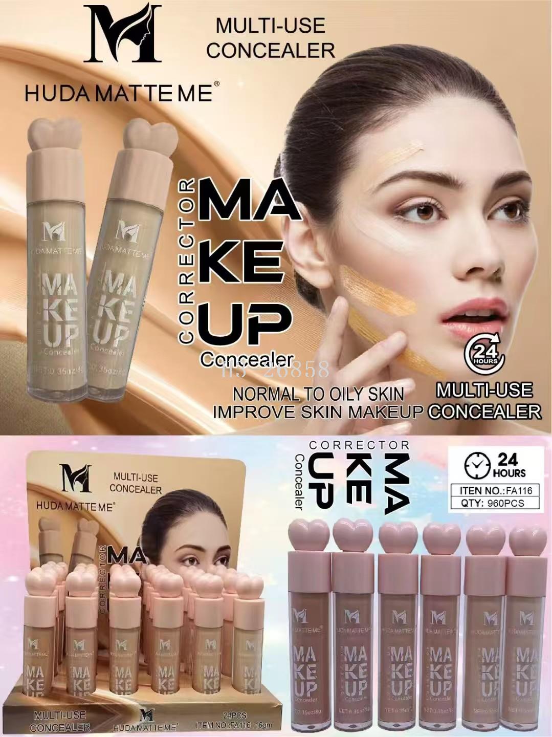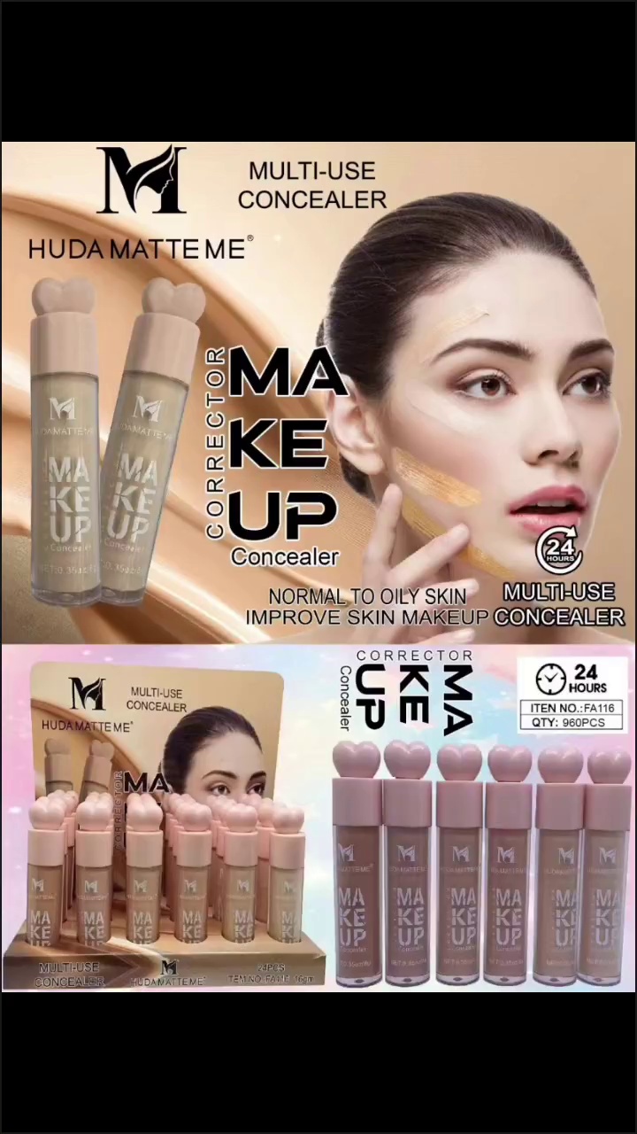 hudamatteme six-color concealer foundation dual-use long lasting waterproof fine wool soft brush factory direct sales 中文版