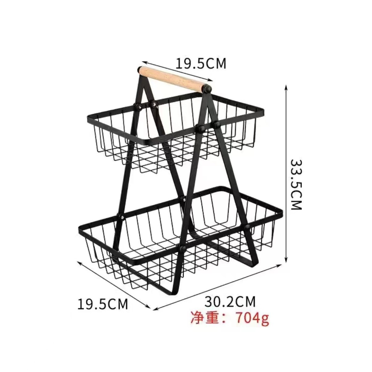 Configuration: One large and one small basket each, two double-layer support sides, wooden handle, instruction manual, and hand-tightened plastic screws.