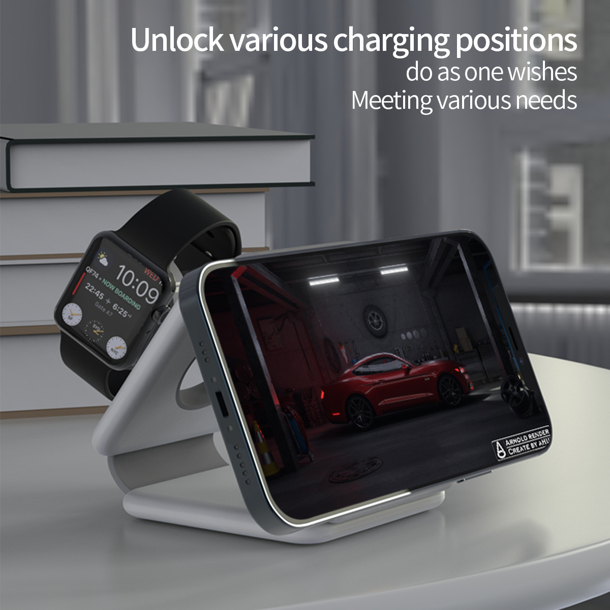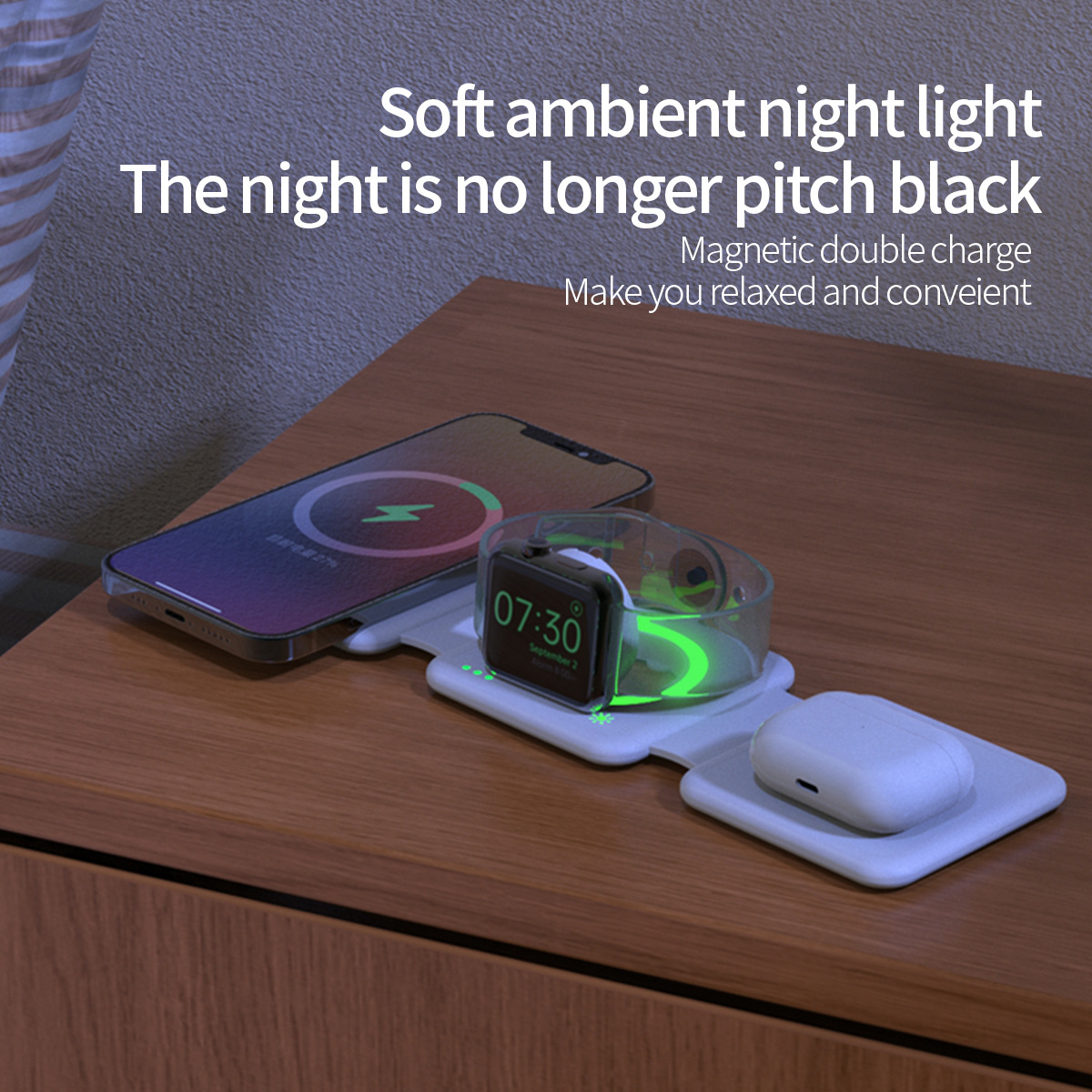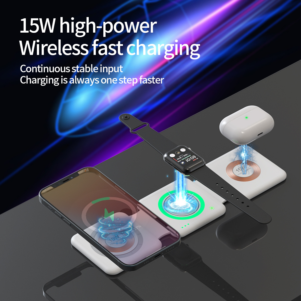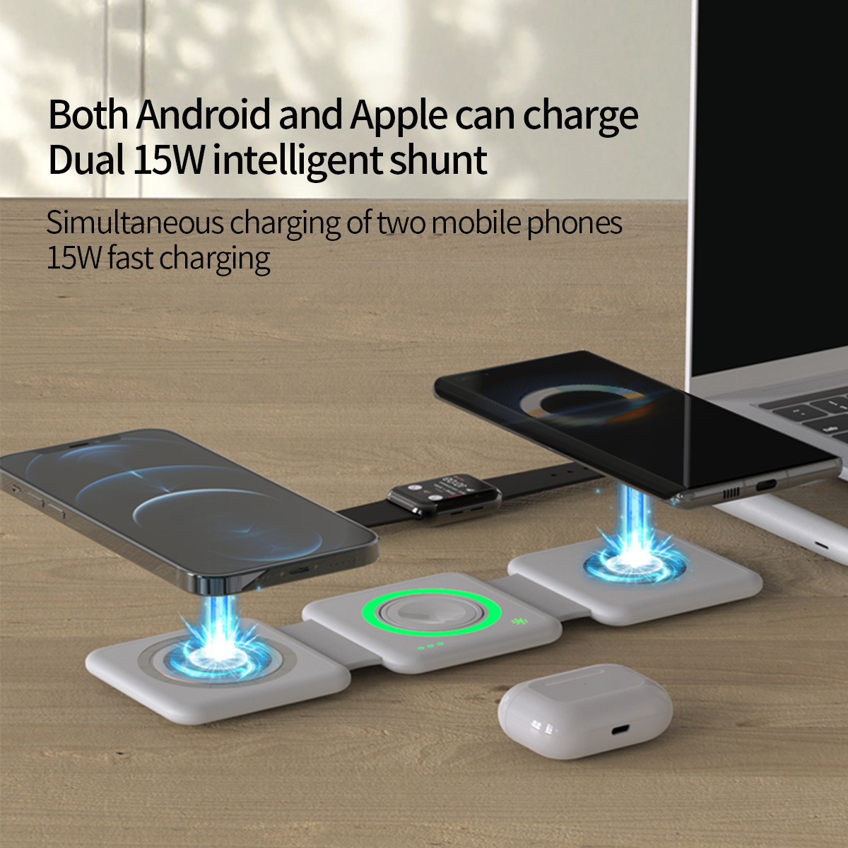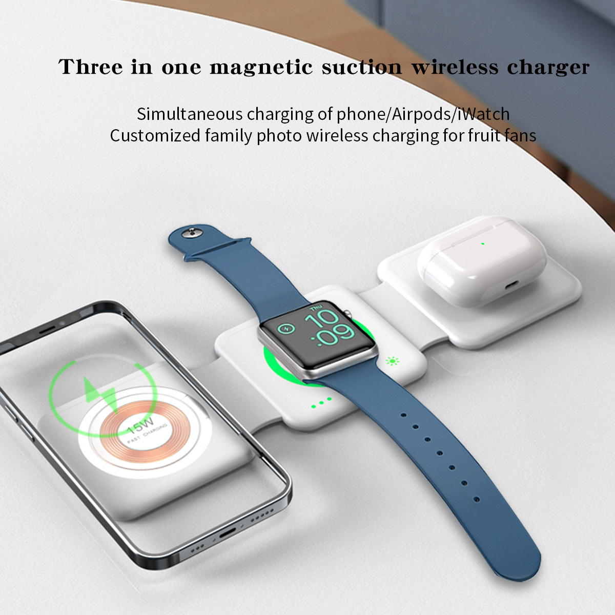 factory direct cross-border three-in-one desktop wireless charger fast charge mobile phone watch folding function magnetic bracket h39