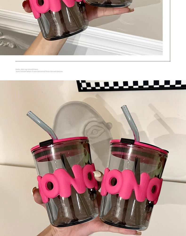 smoky gray + rose red cover + rose red silicone case + smoky gray glass straw 300ml