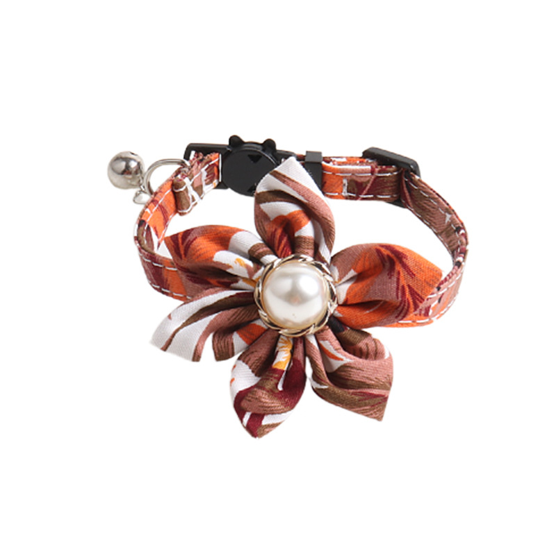 amingge new pet collar pearl sunflower collar pure cotton leaf collar detachable with bell