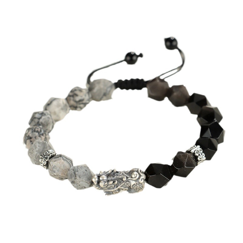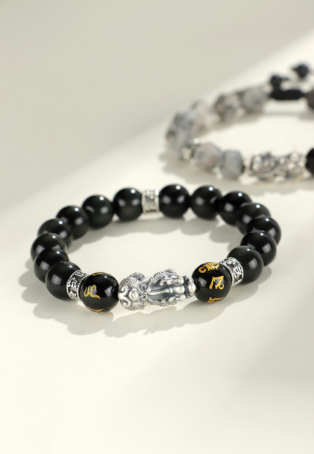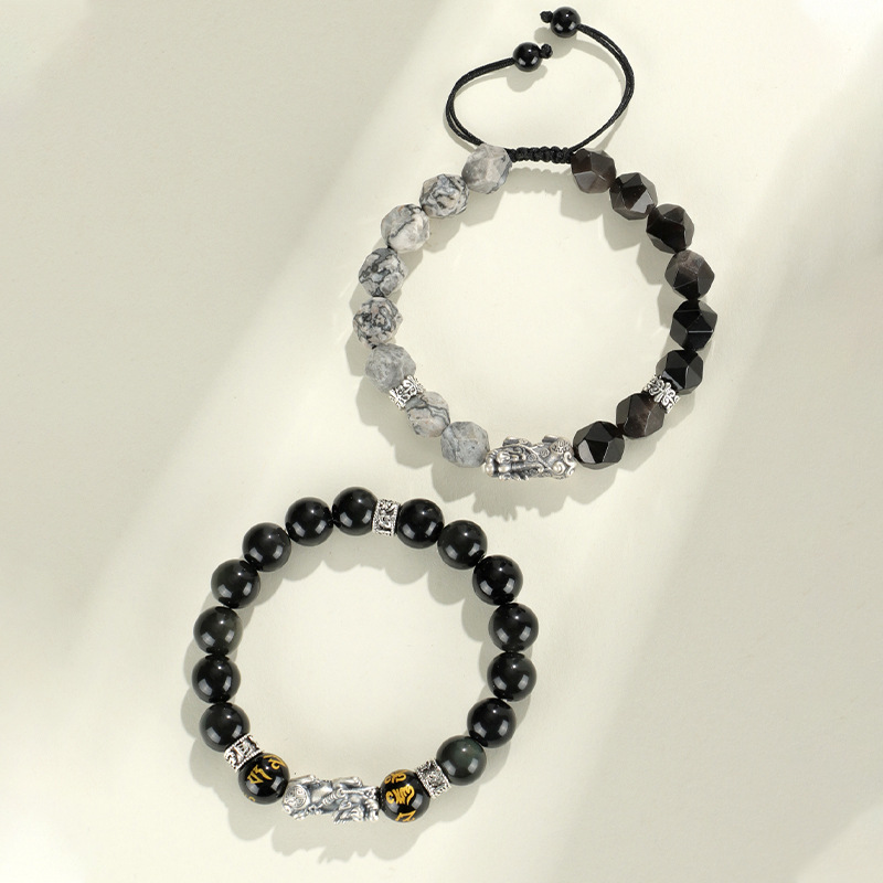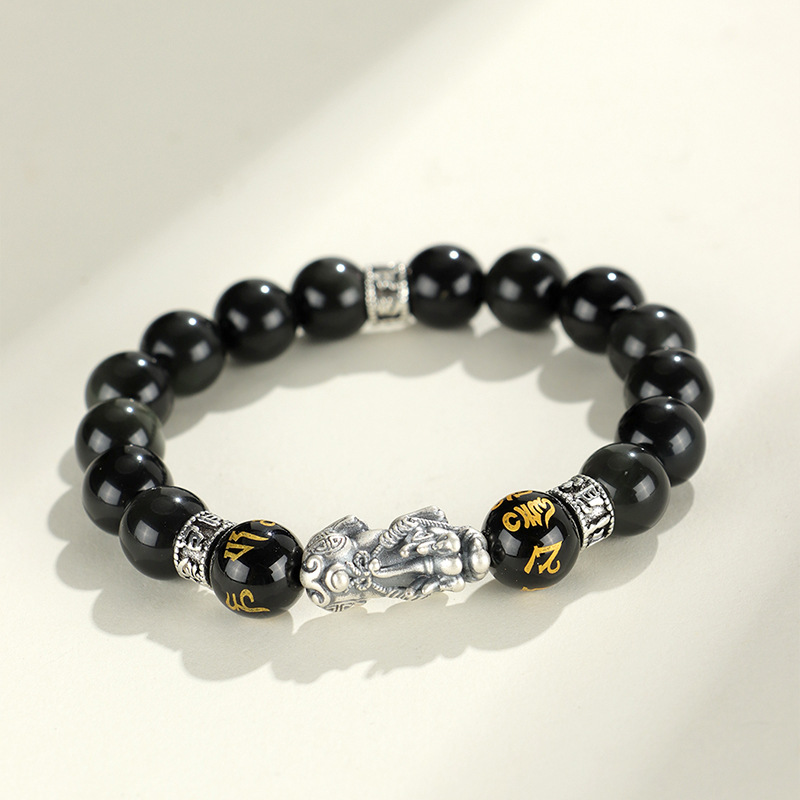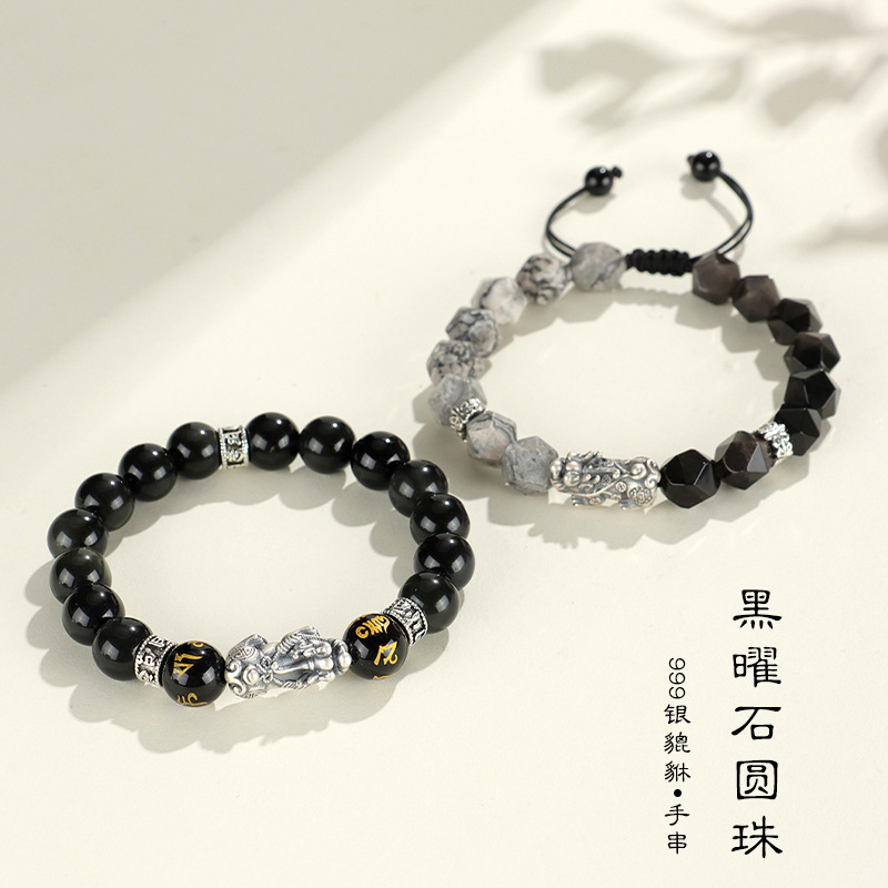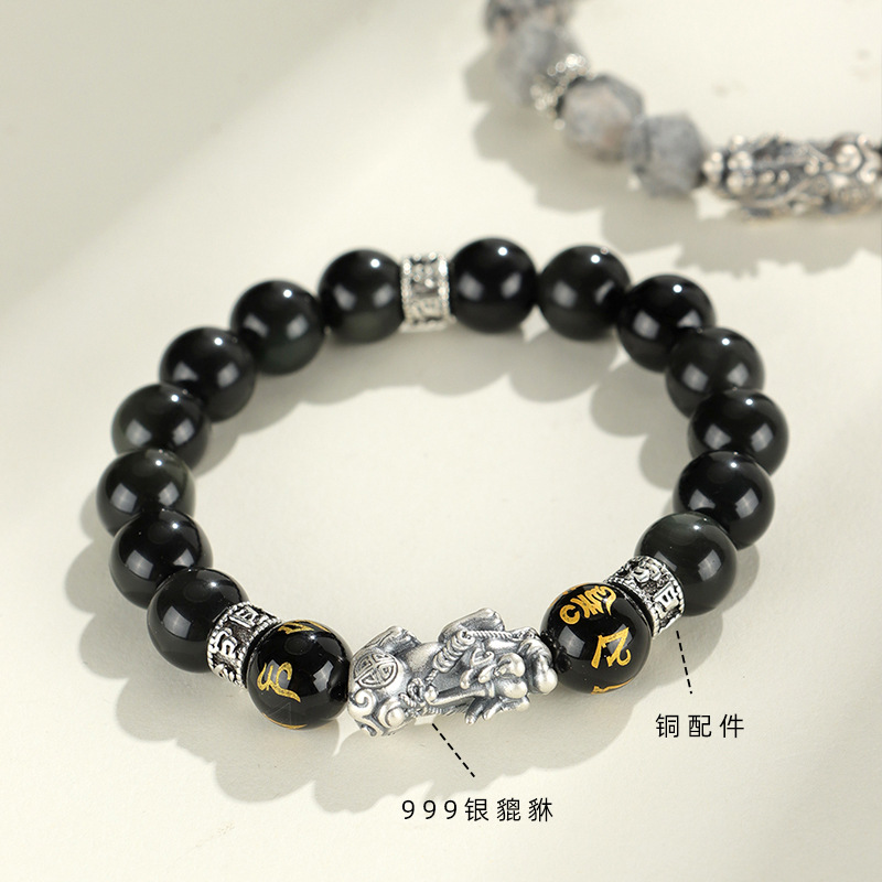 999 silver brave troops + obsidian round beads