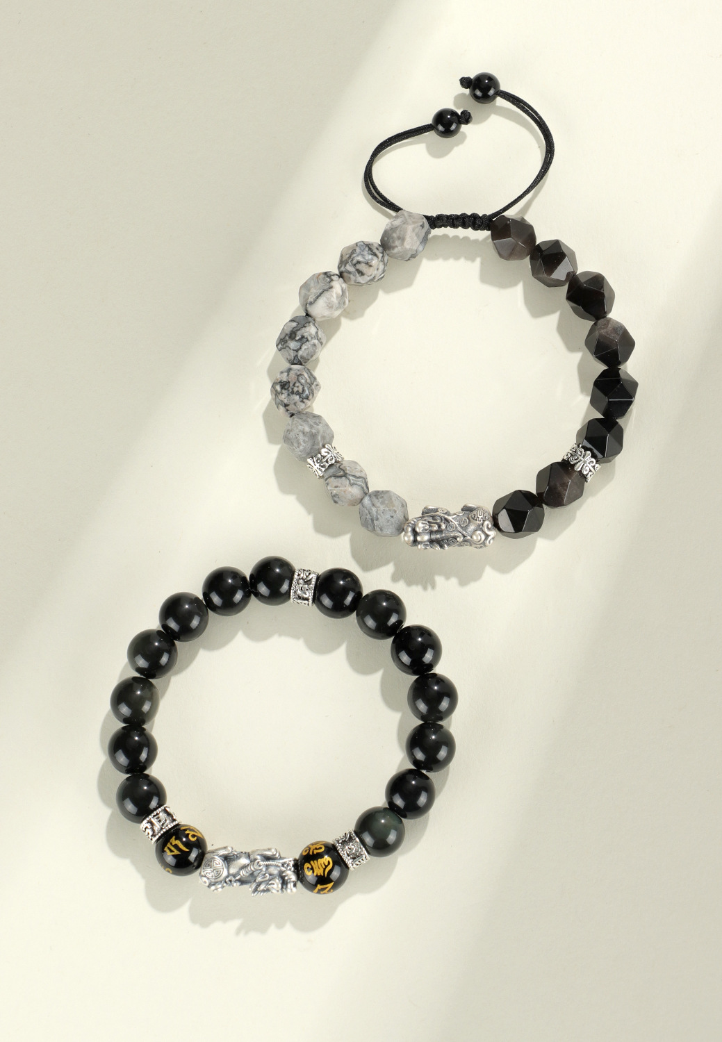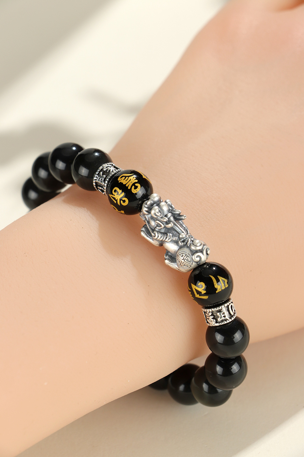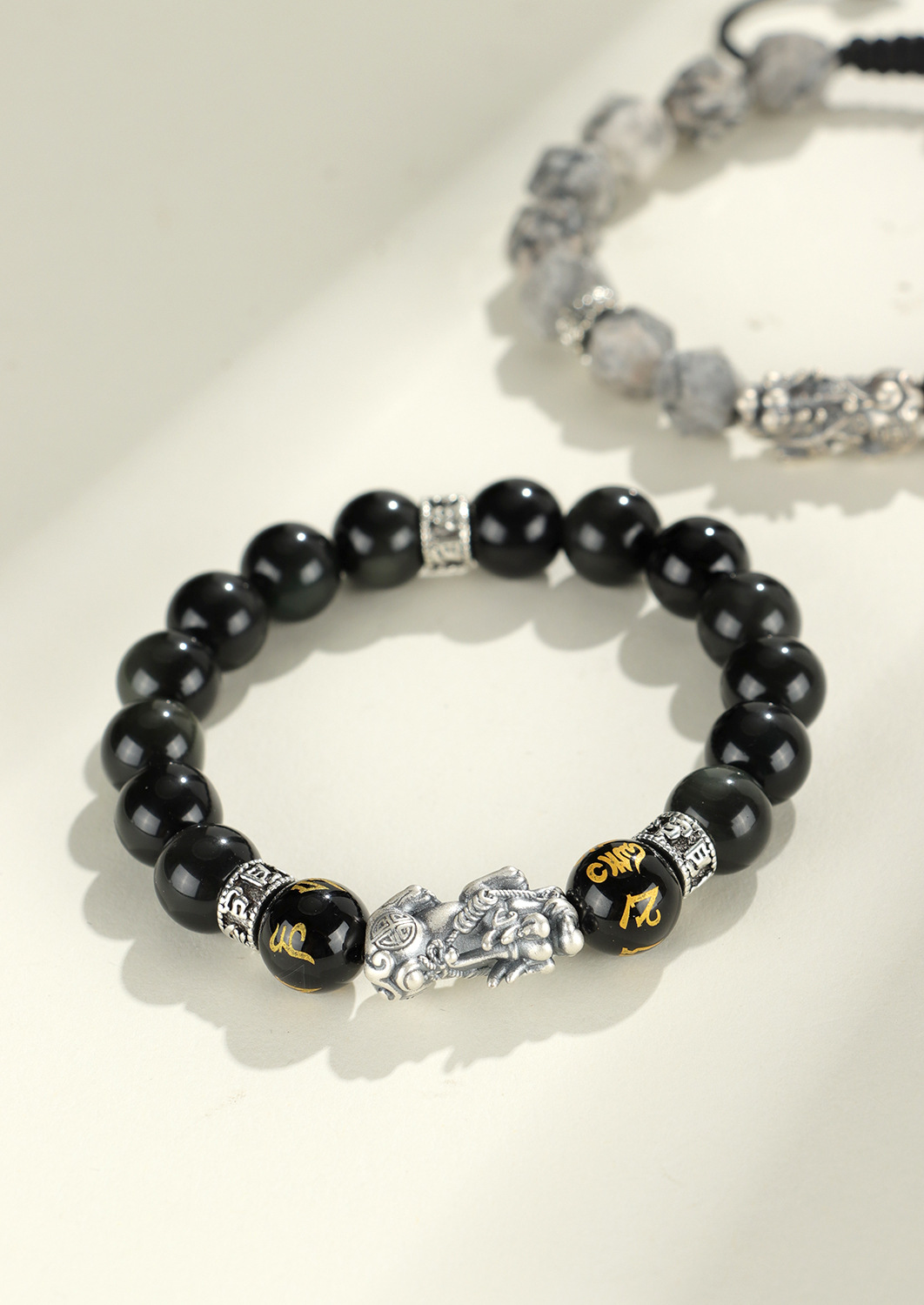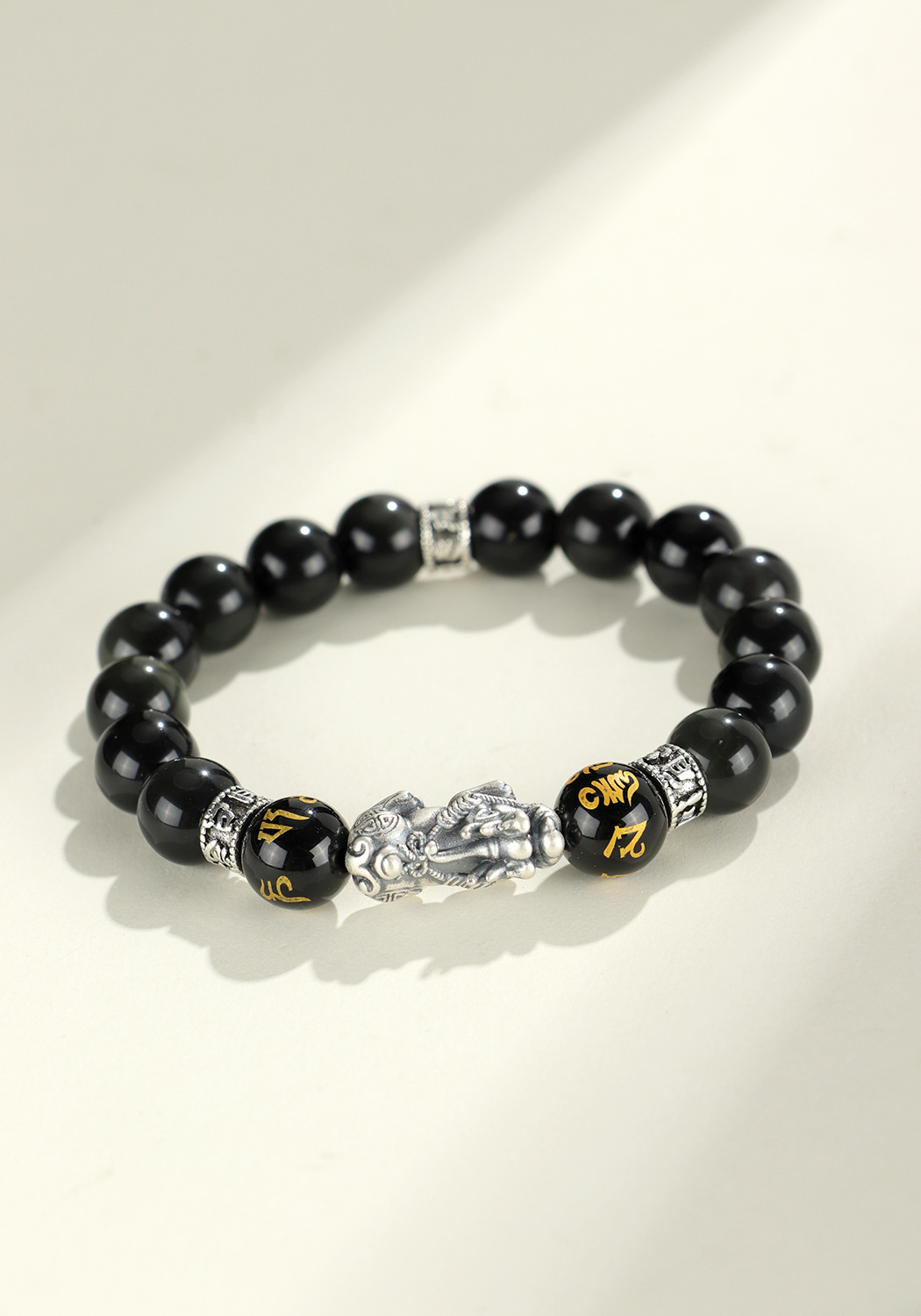 999 silver brave troops + obsidian round beads