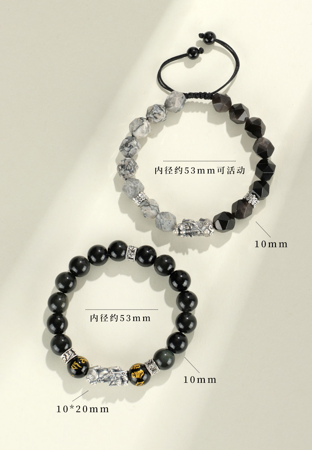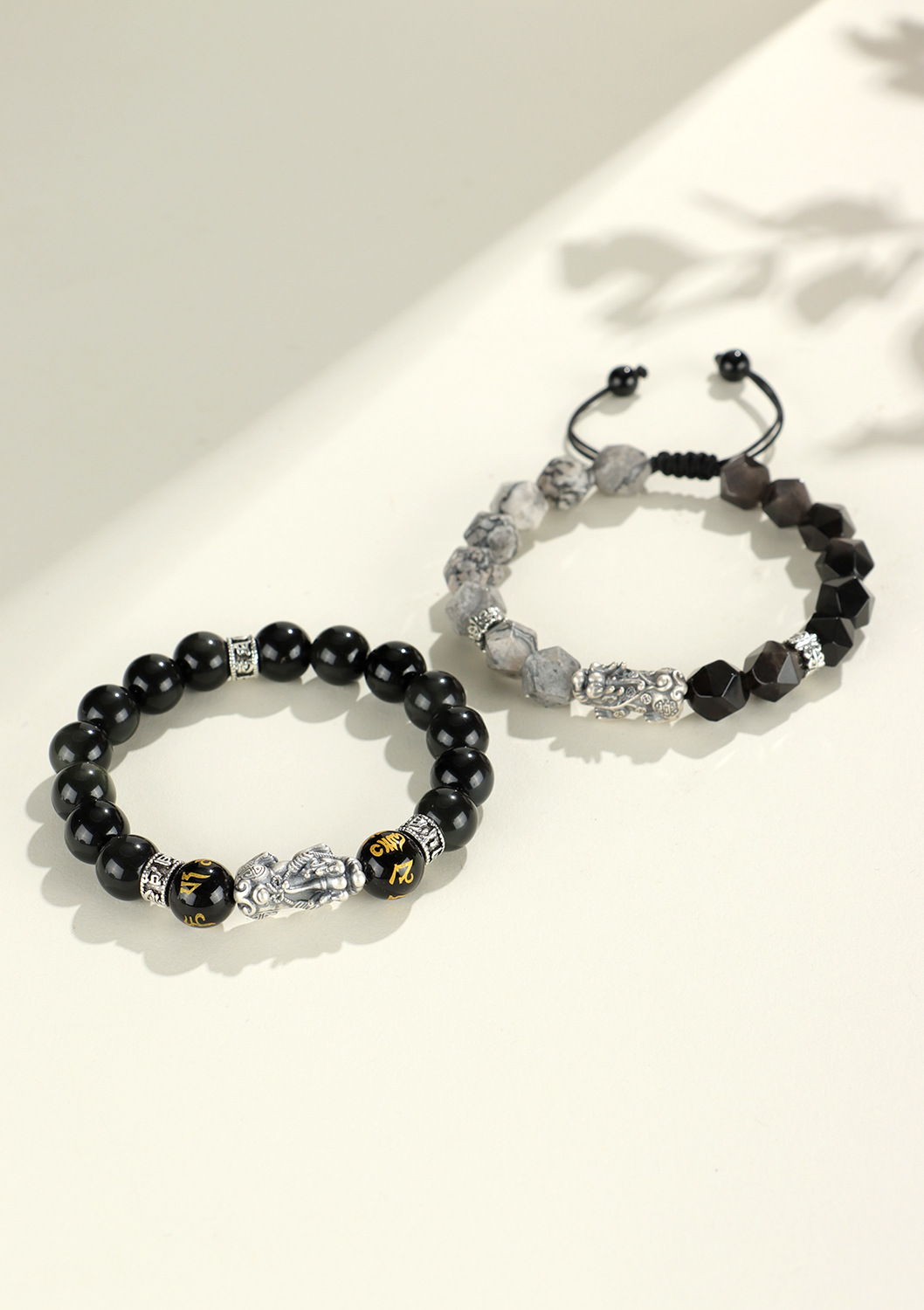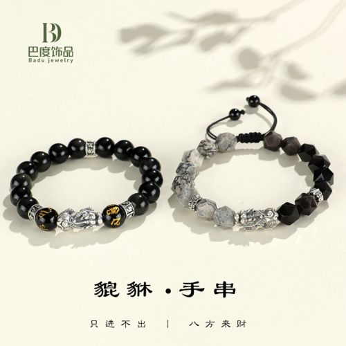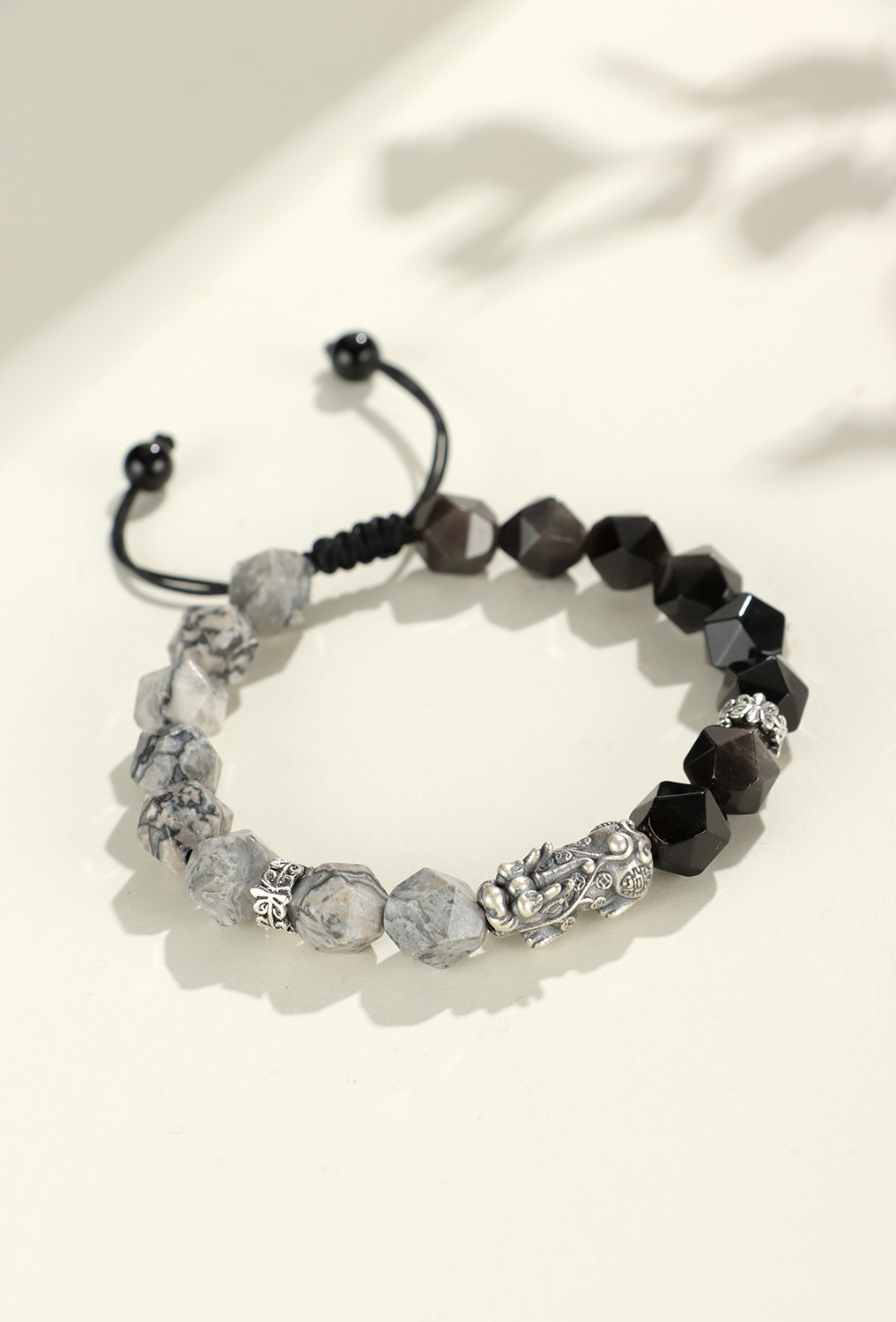 999 silver brave troops + obsidian round beads