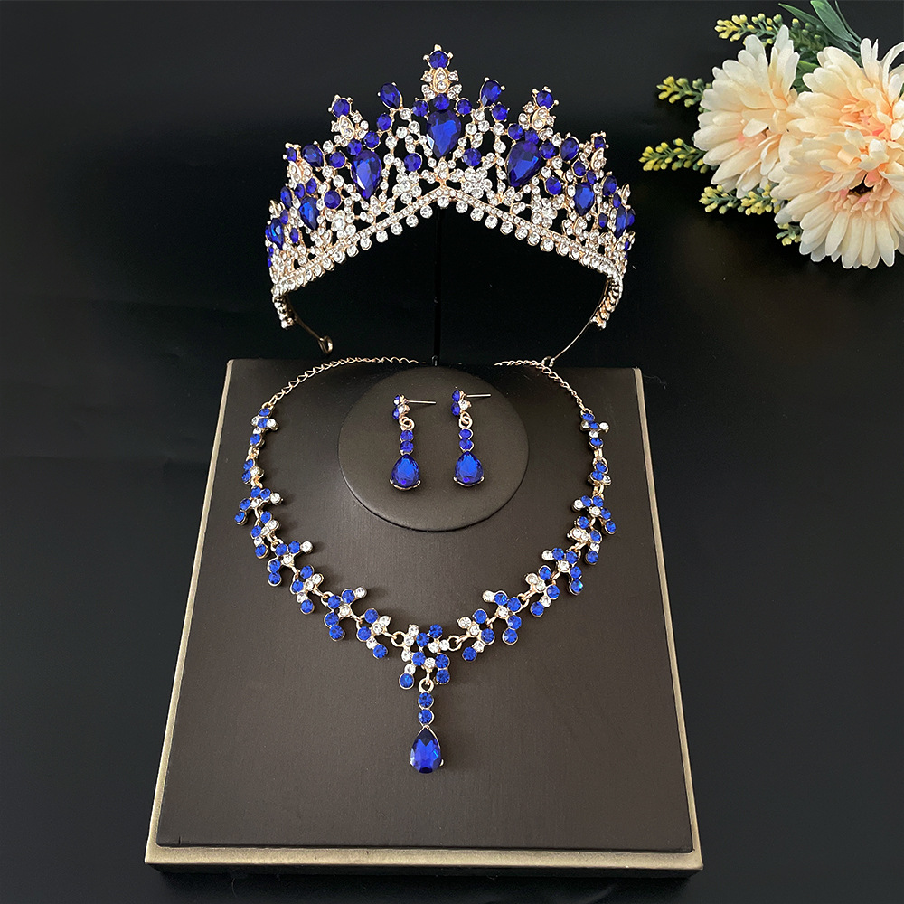 9 copper wire gold and blue crown + necklace auricular needle