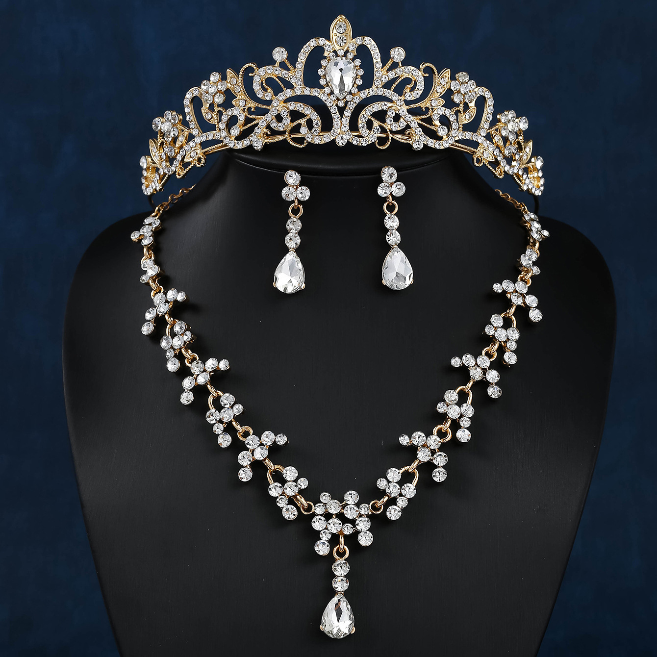 gold single glass chain three-piece set