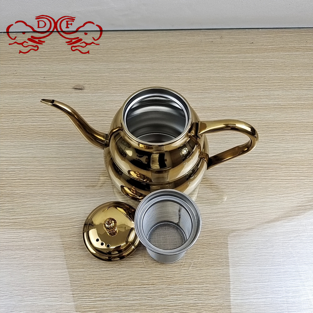 df99152 stainless steel teapot gooseneck coffee pot with infuser gourd pot with strainer