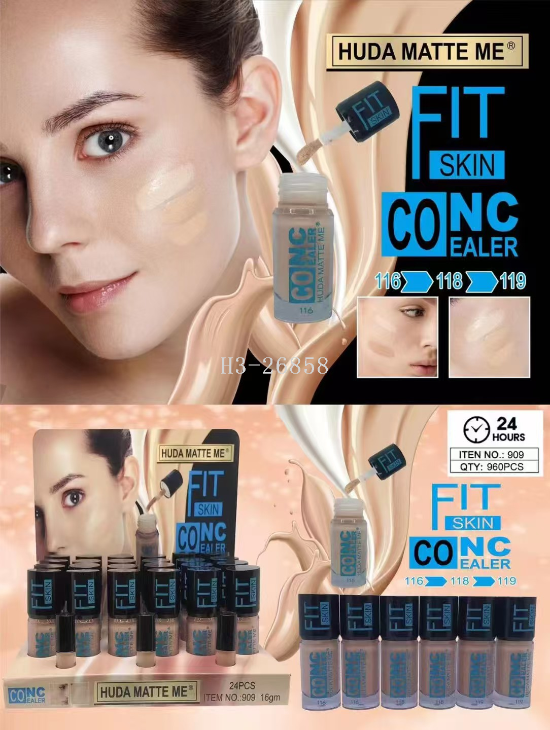 hudamatteme six-color concealer foundation dual-use long lasting waterproof fine wool soft brush factory direct sales 中文版