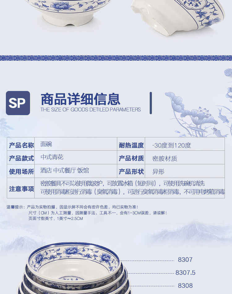 commercial thickened melamine blue and white series a5 imitation porcelain soup noodles spicy hot pot bowl beef noodle bowl lanzhou ramen bowl soup bowl