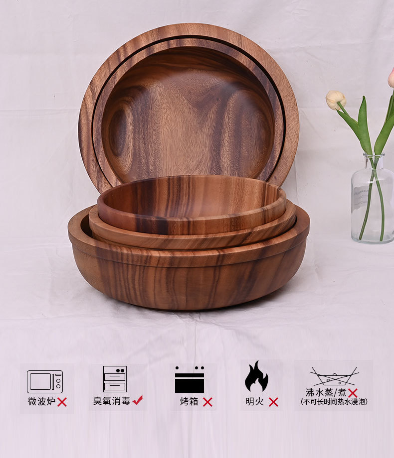 whole wood round retro style lovesickness wooden bowl wood japanese style salad bowl solid wood soup bowl quantity discount