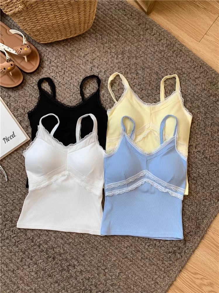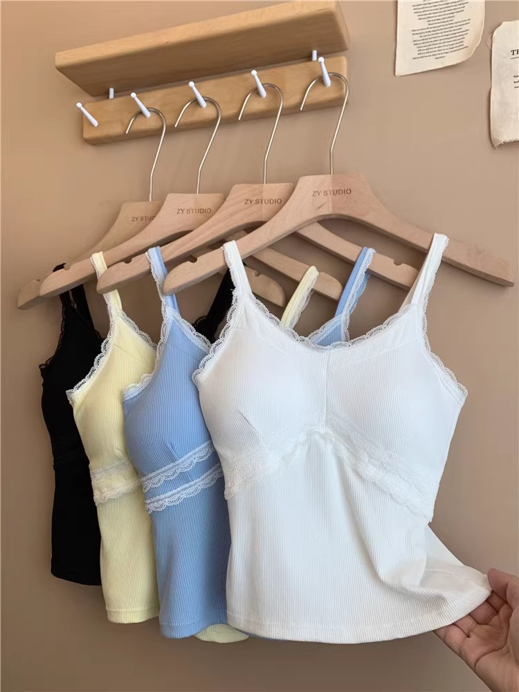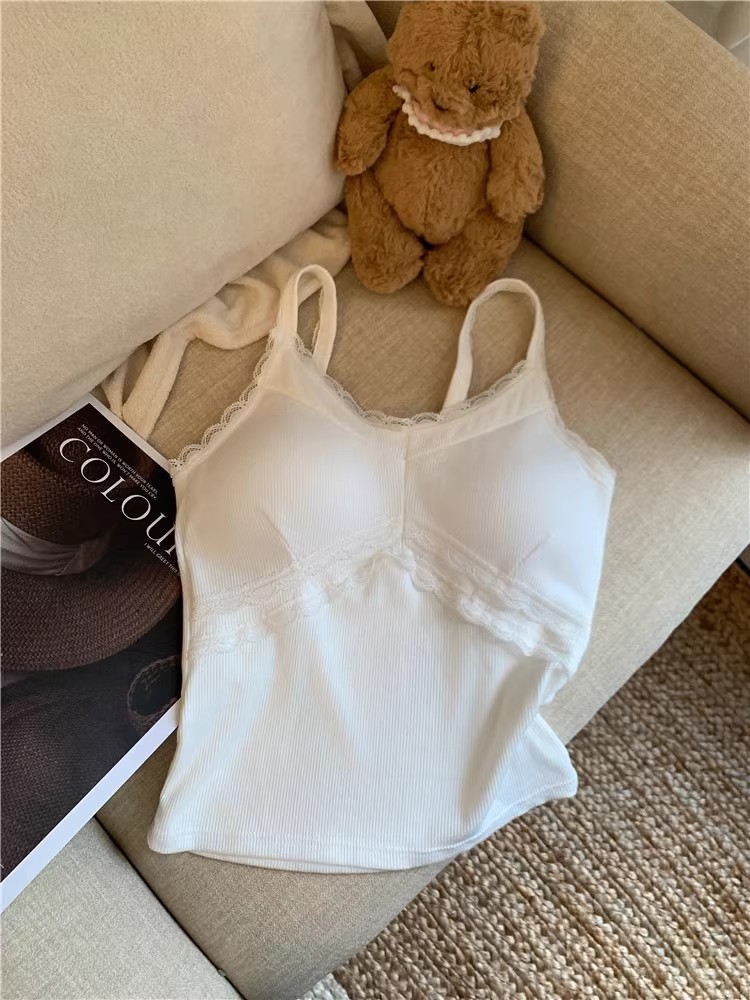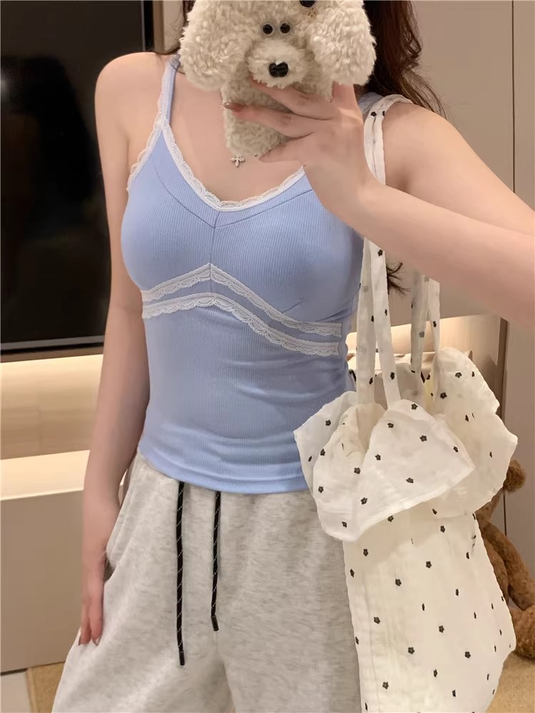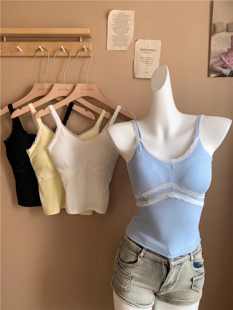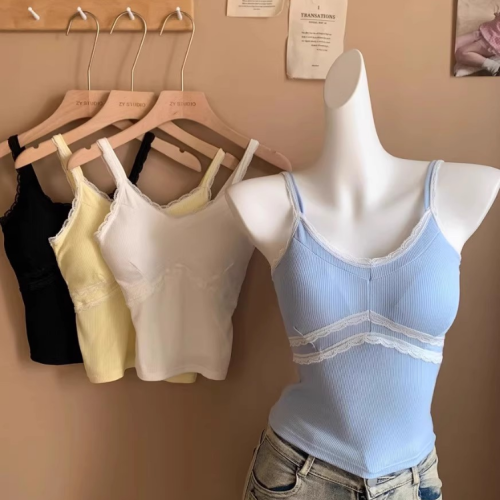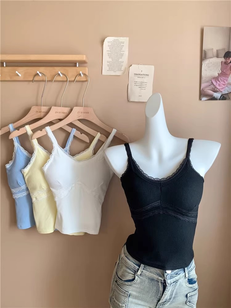 pure style lace splicing sling vest women's summer design versatile one-piece cup bottoming shirt