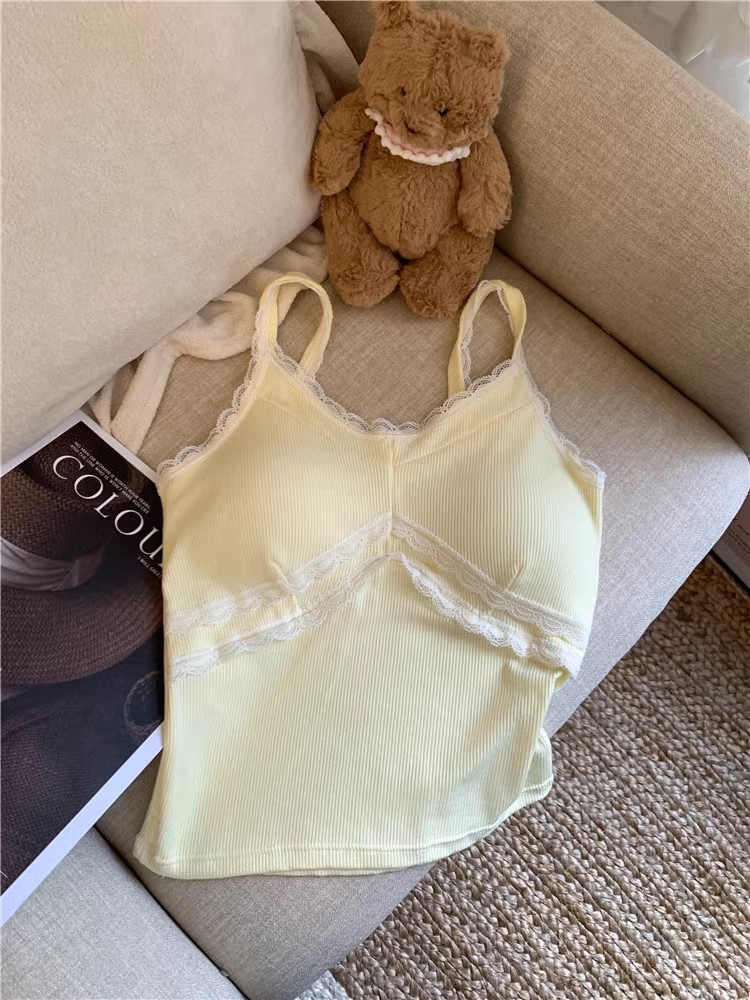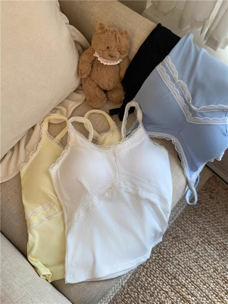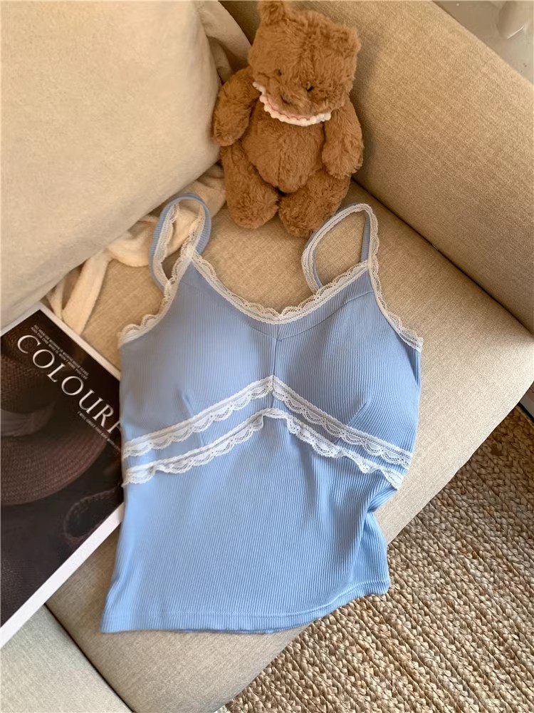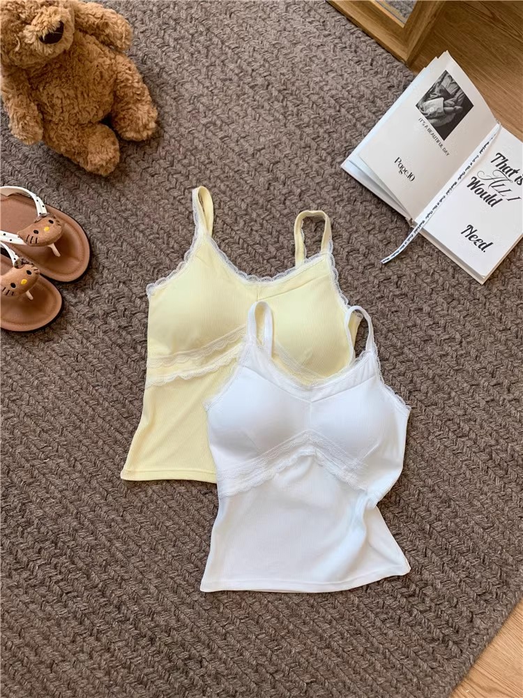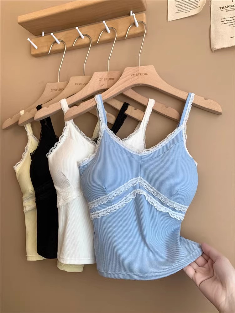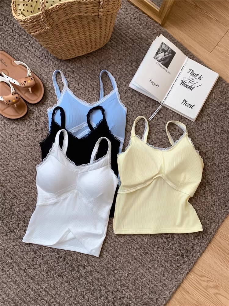 pure style lace splicing sling vest women's summer design versatile one-piece cup bottoming shirt