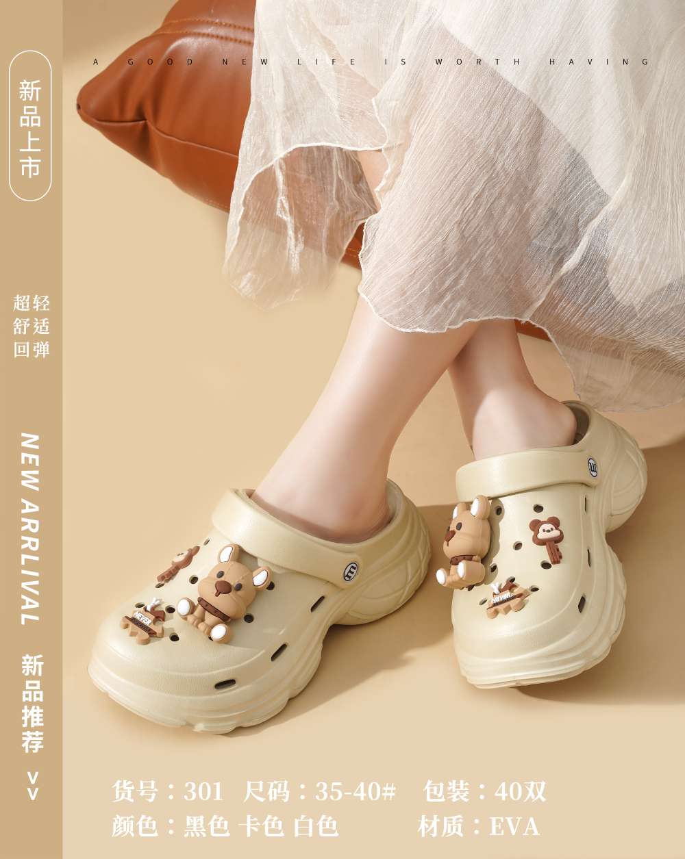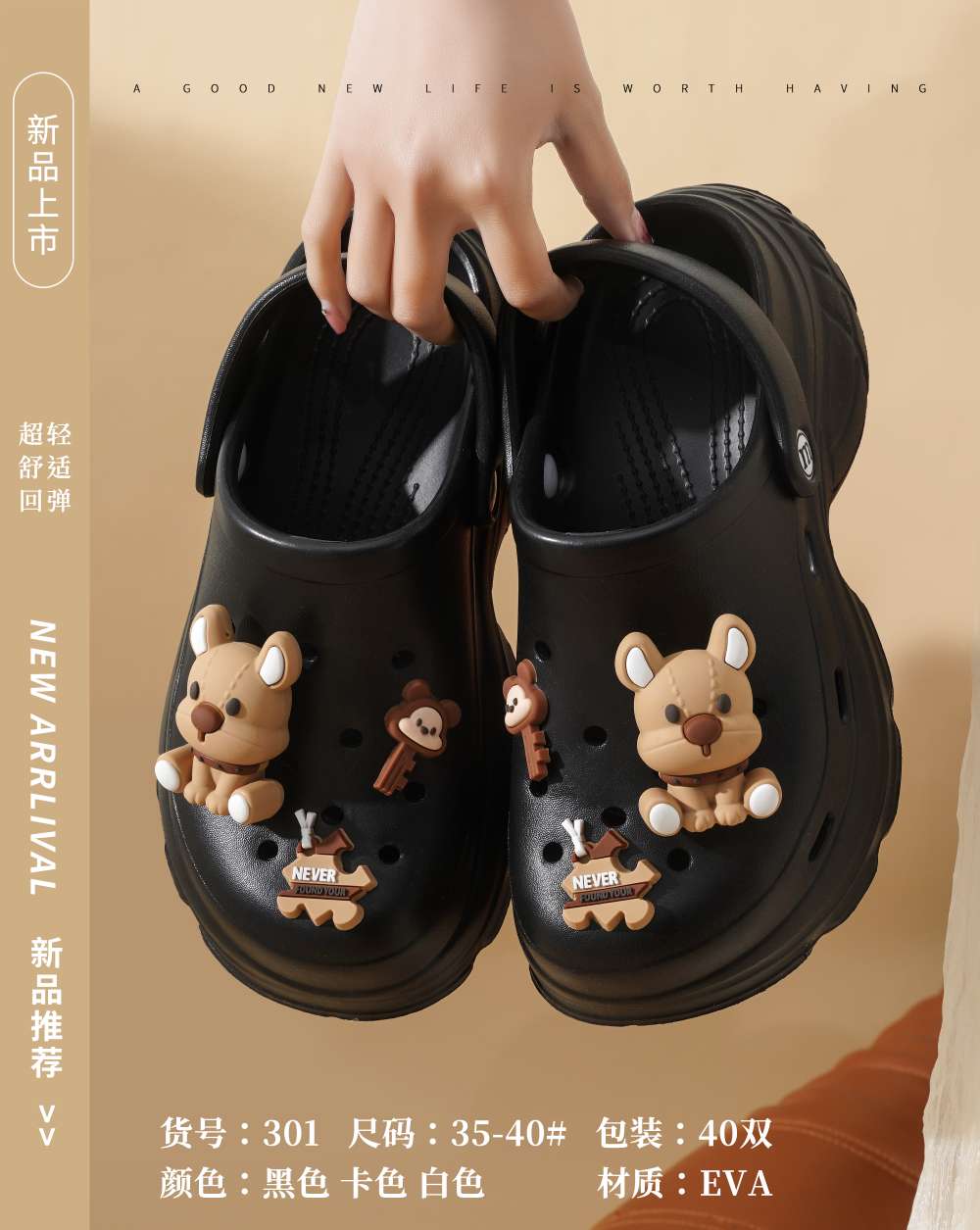 new coros shoes cartoon puppy decoration, super soft and comfortable, durable 中文版