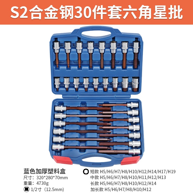 s2 steel hexagonal star batch (h30pc) [30 pieces of plastic box] + ratchet
