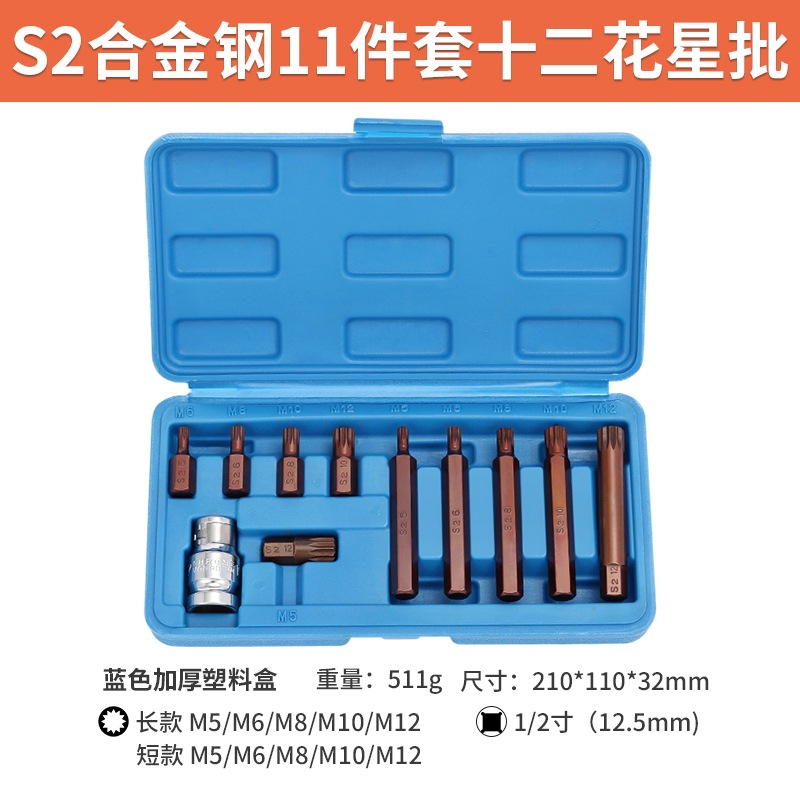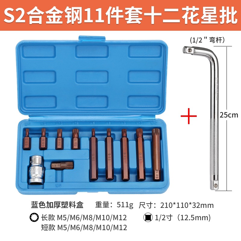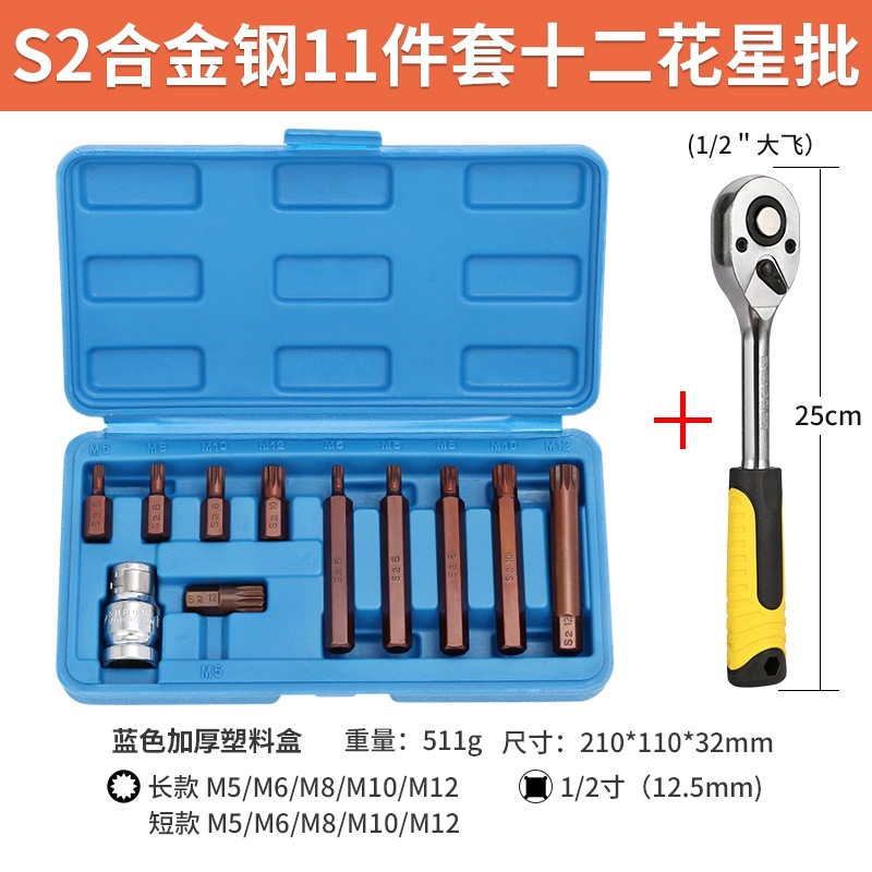 s2 steel twelve flower star batch (m11pc) [11 pieces of plastic box] + ratchet