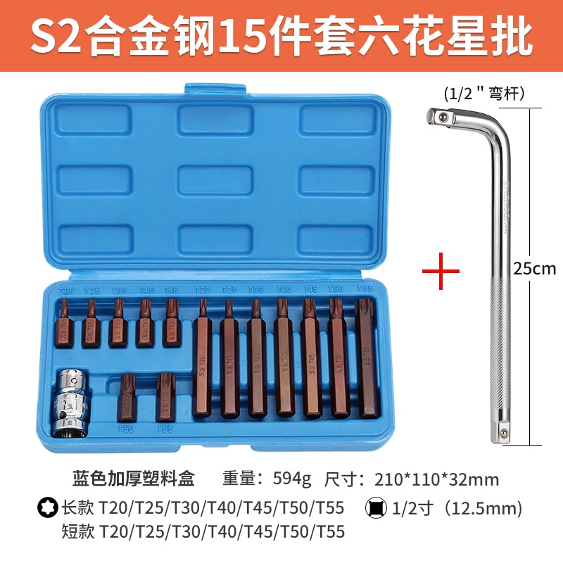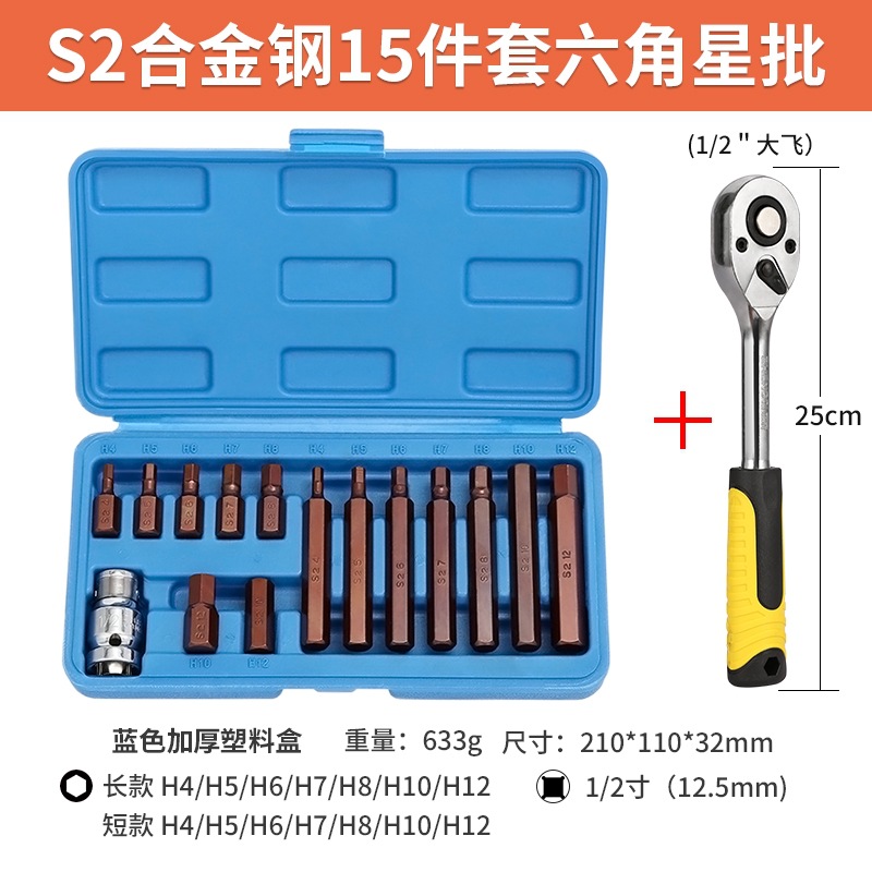 s2 steel hexagonal star batch (h15pc) [15 pieces of plastic box] + ratchet
