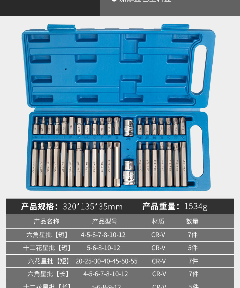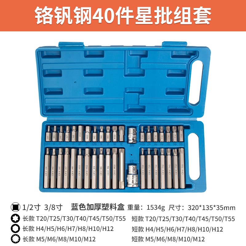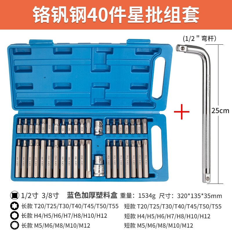 40-piece star batch set (crv plastic box) + curved rod